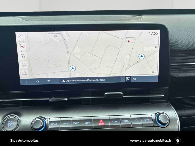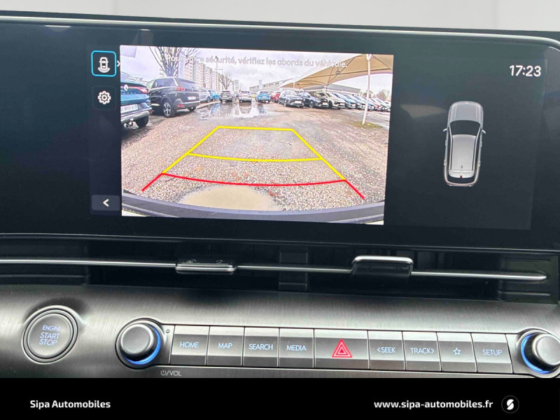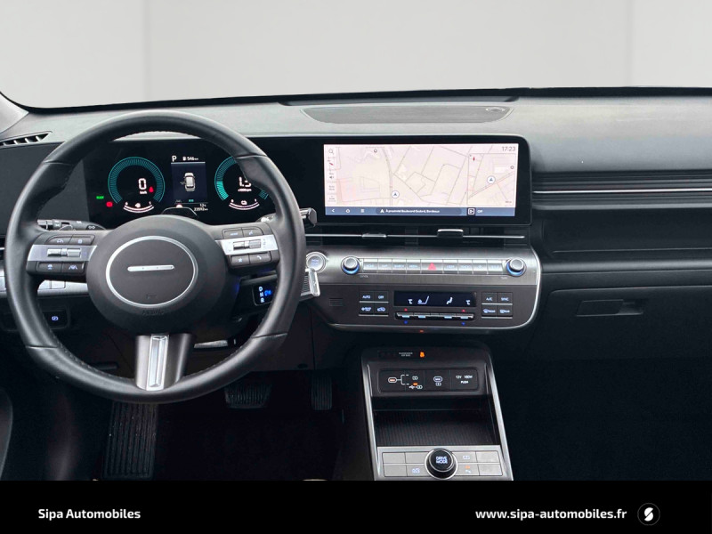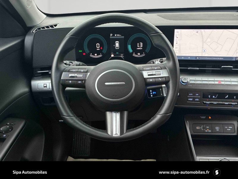 Climatisation automatique bi-zone avec fonction Driver Only et capteur de désembuage automatique du pare-brise / eCall: appel d'urgence automatique aux services de secours avec géolocalisation du véhicule / Système de navigation Europe avec programme de mise à jour à distance et services Hyundai Live / Verrouillage automatique des portes en roulant / 4 prises USB-C; un port de données et une prise de recharge AV, 2 prises de recharge AR / 7 airbags: frontaux conducteur et passager, latéraux AV, rideaux AV/AR, central AV / Accoudoir AR avec porte-gobelets intégré / Alerte de présence de passager AR / Assistance active au maintien et au suivi de voie / Assistance active à la conduite sur autoroute / Caméra de recul avec lignes de guidage dynamiques / Console de rangement sous accoudoir AV / Drive Mode (Eco, Sport, Snow) / Détection de fatigue du conducteur / Feux de route intelligents / Frein de parking électrique avec fonction auto-hold / Freinage anti multi-collisions / Freinage d'urgence autonome avec reconnaissance véhicule, piéton, cycliste et fonction intersection / Freinage régénératif modulable via palettes au volant / Pare-brise avec film acoustique / Plancher de coffre modulable / Protections d'ailes noires / Reconnaissance des panneaux de limitation de vitesse avec limiteur de vitesse intelligent / Réception radio numérique terrestre (DAB) / Services connectés BlueLink avec carte SIM incluse / Système audio RDS, compatible MP3, 4HP et 2 tweeters / Système d'accès mains-libres et démarrage sans clé / Système ISOFIX pour siège enfant aux places latérales AR / Système multimédia avec écran couleur tactile 12,3" / Transmission à commande électrique / Vitres électriques AV/AR et séquentielle à l'AV
