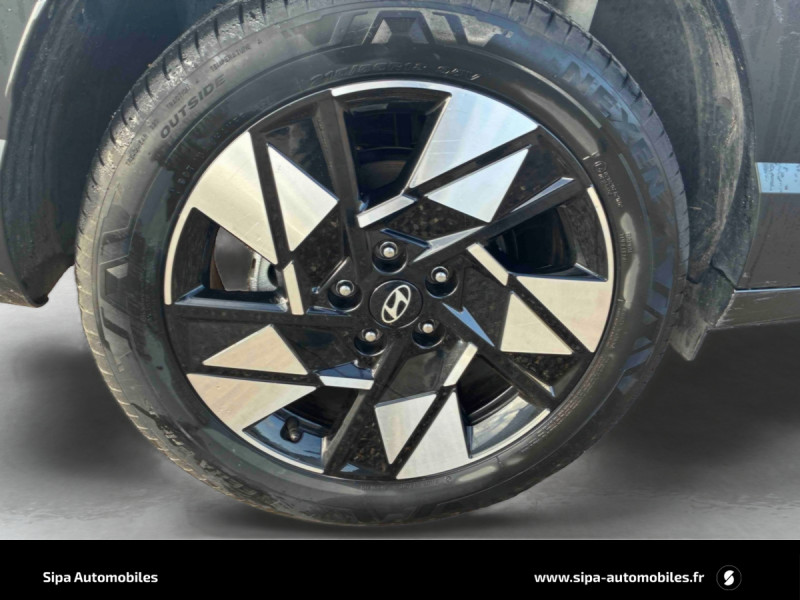 Climatisation automatique bi-zone avec fonction Driver Only et capteur de désembuage automatique du pare-brise / eCall: appel d'urgence automatique aux services de secours avec géolocalisation du véhicule / Eclairage d'ambiance à LED personnalisable / Rétroviseur intérieur jour/nuit automatique / Système de navigation Europe avec programme de mise à jour à distance et services Hyundai Live / Verrouillage automatique des portes en roulant / 4 prises USB-C; un port de données et une prise de recharge AV, 2 prises de recharge AR / 7 airbags: frontaux conducteur et passager, latéraux AV, rideaux AV/AR, central AV / Accoudoir AR avec porte-gobelets intégré / Alerte de circulation transversale AR avec fonction freinage / Alerte de présence de passager AR / Assistance active au maintien et au suivi de voie / Assistance active à la conduite sur autoroute / Assistance à la sortie du véhicule pour passagers AR / Caméra de recul avec lignes de guidage dynamiques / Chargeur sans fil pour téléphone compatible / Compteurs numériques 12,3" / Console de rangement sous accoudoir AV / Drive Mode (Eco, Sport, Snow) / Détection de fatigue du conducteur / Feux de route intelligents / Frein de parking électrique avec fonction auto-hold / Freinage anti multi-collisions / Freinage d'urgence autonome avec reconnaissance véhicule, piéton, cycliste et fonction intersection / Freinage régénératif modulable via palettes au volant / Ligne de caisse satinée / Ouïes de ventilation AR / Pare-brise avec film acoustique / Plancher de coffre modulable / Poches aumonières au dos des sièges AV / Poignées de portes intérieures grain métal / Protections d'ailes gris anthracite / Rails de toit / Reconnaissance des panneaux de limitation de vitesse avec limiteur de vitesse intelligent / Réception radio numérique terrestre (DAB) / Services connectés BlueLink avec carte SIM incluse / Siège conducteur avec support lombaire électrique / Skis AV et AR grain métal / Surveillance active des angles morts / Système audio RDS, compatible MP3, 4HP et 2 tweeters / Système d'accès mains-libres et démarrage sans clé / Système ISOFIX pour siège enfant aux places latérales AR / Système multimédia avec écran couleur tactile 12,3" / Transmission à commande électrique / Vitres électriques AV/AR et séquentielle à l'AV / Volant chauffant