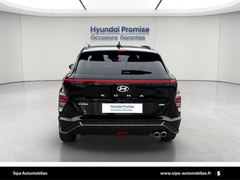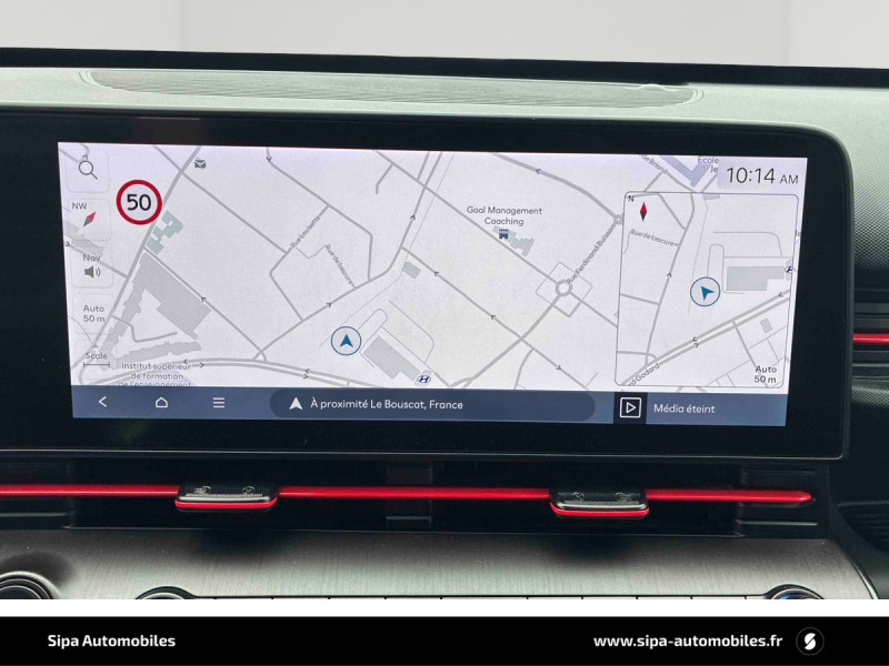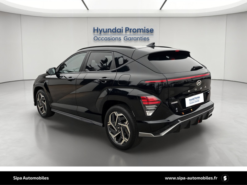 Aide au stationnement AR avec fonction freinage / Aide au stationnement AV et AR avec capteurs latéraux / Aide au stationnement à distance via télécommande AV/AR / Atmosphère intérieure N Line: intérieur noir intégral avec inserts décoratifs, liserés et surpiqures rouges, ciel de toit noir, pédalier façon aluminium / Climatisation automatique bi-zone avec fonction Driver Only et capteur de désembuage automatique du pare-brise / eCall: appel d'urgence automatique aux services de secours avec géolocalisation du véhicule / Eclairage d'ambiance à LED personnalisable / Feux "Seamless Horizon" avec bandeau LED / Feux AV bi-LED type projection / Jantes alliage bi-ton 18" N Line / Rétroviseur intérieur jour/nuit automatique / Système de navigation Europe avec programme de mise à jour à distance et services Hyundai Live / Verrouillage automatique des portes en roulant / 4 prises USB-C; un port de données et une prise de recharge AV, 2 prises de recharge AR / 7 airbags: frontaux conducteur et passager, latéraux AV, rideaux AV/AR, central AV / Accoudoir AR avec porte-gobelets intégré / Affichage caméra des angles morts / Alerte de circulation transversale AR avec fonction freinage / Alerte de présence de passager AR / Assistance active au maintien et au suivi de voie / Assistance active à la conduite sur autoroute / Assistance à la sortie du véhicule pour passagers AR / Caméra 360° / Caméra de recul avec lignes de guidage dynamiques / Chargeur sans fil pour téléphone compatible / Clef digitale; accès et démarrage par smartphone / Compteurs numériques 12,3" / Console de rangement sous accoudoir AV / Design N Line: boucliers AV et AR spécifiques, double sortie d'échappement, protections d'ailes couleur, carrosserie, rétroviseurs extérieurs noir laqué, ligne de caisse noire, bas de caisse avec insert grain métal / Drive Mode (Eco, Sport, Snow) / Détection de fatigue du conducteur / Feux de route intelligents / Frein de parking électrique avec fonction auto-hold / Freinage anti multi-collisions / Freinage d'urgence autonome avec reconnaissance véhicule, piéton, cycliste et fonction intersection / Freinage régénératif modulable via palettes au volant / Hayon mains-libres intelligent / Ouïes de ventilation AR / Pare-brise avec film acoustique / Plancher de coffre modulable / Poches aumonières au dos des sièges AV / Poignées de portes intérieures grain métal / Rails de toit / Reconnaissance des panneaux de limitation de vitesse avec limiteur de vitesse intelligent / Réception radio numérique terrestre (DAB) / Services connectés BlueLink avec carte SIM incluse / Siège conducteur avec support lombaire électrique / Skis AV et AR grain métal / Surveillance active des angles morts / Système audio premium Bose, 5 HP, 2 tweeters et subwoofer / Système d'accès mains-libres et démarrage sans clé / Système ISOFIX pour siège enfant aux places latérales AR / Système multimédia avec écran couleur tactile 12,3" / Transmission à commande électrique / Vitres électriques AV/AR et séquentielle à l'AV / Volant chauffant