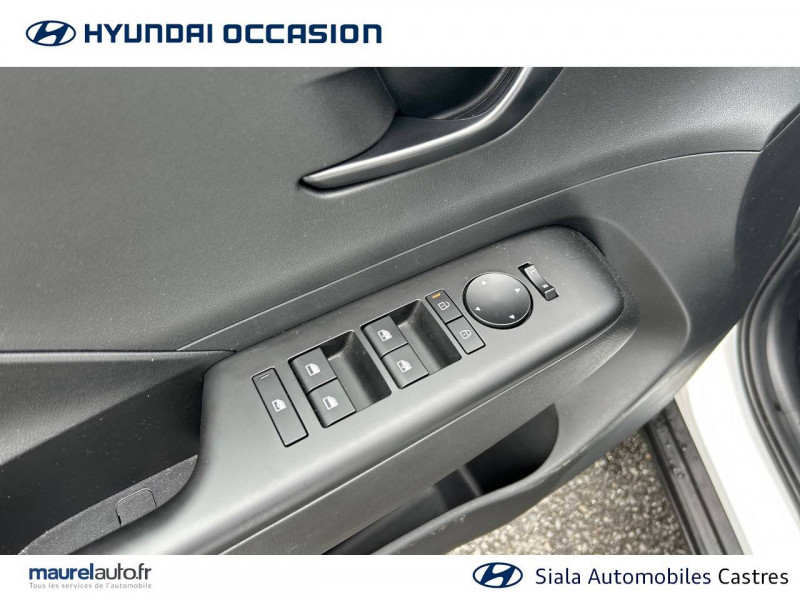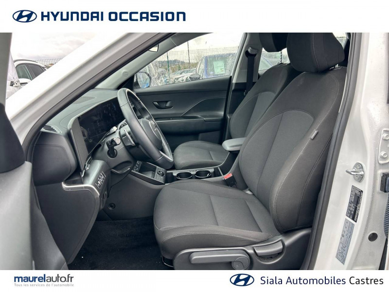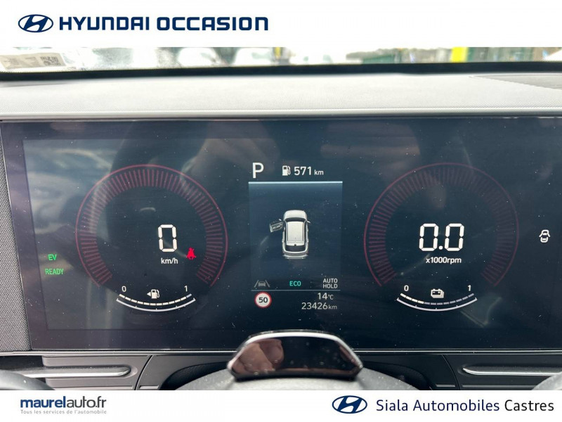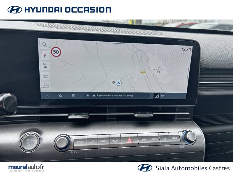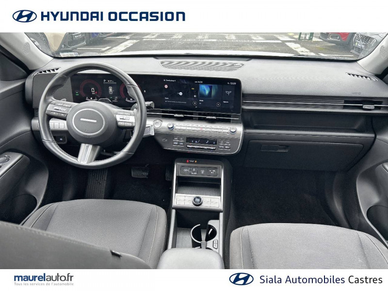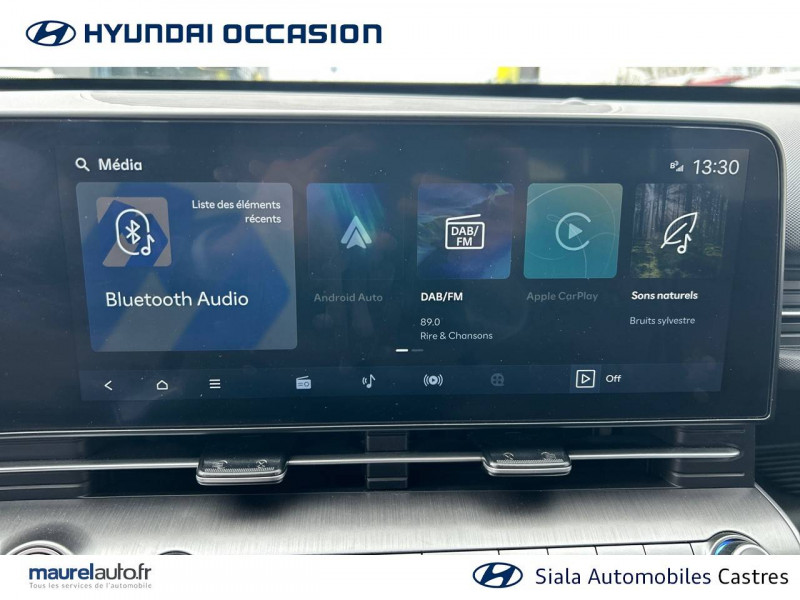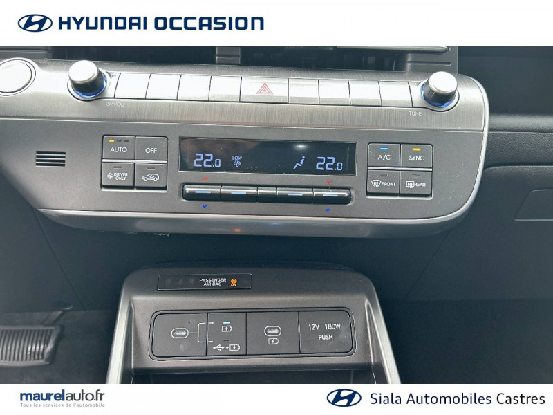 4 prises USB-C; un port de données et une prise de recharge AV, 2 prises de recharge AR / 7 airbags: frontaux conducteur et passager, latéraux AV, rideaux AV/AR, central AV / Accoudoir AR avec porte-gobelets intégré / Alerte de présence de passager AR / Assistance active à la conduite sur autoroute / Assistance active au maintien et au suivi de voie / Caméra de recul avec lignes de guidage dynamiques / Climatisation automatique bi-zone avec fonction Driver Only et capteur de désembuage automatique du pare-brise / Console de rangement sous accoudoir AV / Détection de fatigue du conducteur / Drive Mode (Eco, Sport, Snow) / eCall: appel d'urgence automatique aux services de secours avec géolocalisation du véhicule / Feux de route intelligents / Filet de coffre / Freinage anti multi-collisions / Freinage d'urgence autonome avec reconnaissance véhicule, piéton, cycliste et fonction intersection / Freinage régénératif modulable via palettes au volant / Frein de parking électrique avec fonction auto-hold / Pare-brise avec film acoustique / Plancher de coffre modulable / Protections d'ailes noires / Réception radio numérique terrestre (DAB) / Reconnaissance des panneaux de limitation de vitesse avec limiteur de vitesse intelligent / Services connectés BlueLink avec carte SIM incluse / Système audio RDS, compatible MP3, 4HP et 2 tweeters / Système d'accès mains-libres et démarrage sans clé / Système de navigation Europe avec programme de mise à jour à distance et services Hyundai Live / Système ISOFIX pour siège enfant aux places latérales AR / Système multimédia avec écran couleur tactile 12,3" / Transmission à commande électrique / Verrouillage automatique des portes en roulant / Vitres électriques AV/AR et séquentielle à l'AV