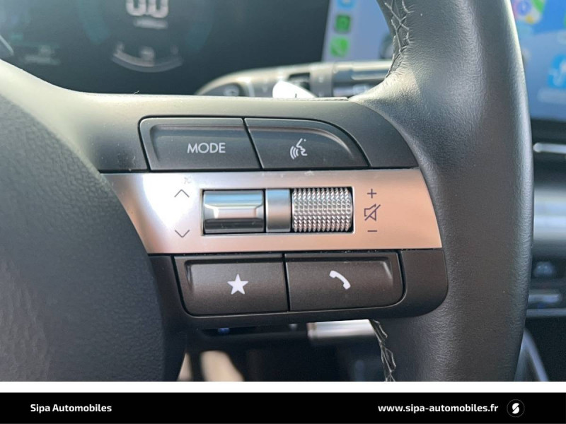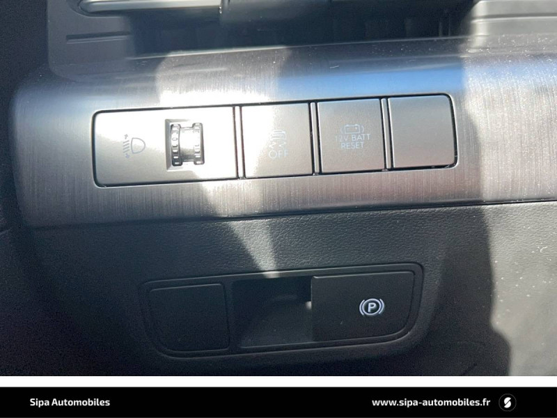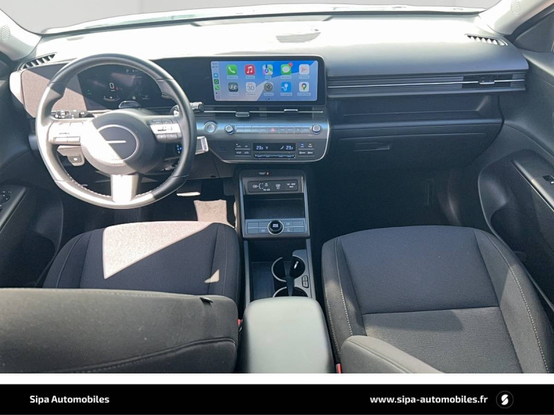 4 prises USB-C; un port de données et une prise de recharge AV, 2 prises de recharge AR / 7 airbags: frontaux conducteur et passager, latéraux AV, rideaux AV/AR, central AV / Accoudoir AR avec porte-gobelets intégré / Alerte de présence de passager AR / Assistance active à la conduite sur autoroute / Assistance active au maintien et au suivi de voie / Caméra de recul avec lignes de guidage dynamiques / Climatisation automatique bi-zone avec fonction Driver Only et capteur de désembuage automatique du pare-brise / Console de rangement sous accoudoir AV / Détection de fatigue du conducteur / Drive Mode (Eco, Sport, Snow) / eCall : appel d'urgence automatique aux services de secours avec géolocalisation du véhicule / Feux de route intelligents / Filet de coffre / Freinage anti multi-collisions / Freinage d'urgence autonome avec reconnaissance véhicule, piéton, cycliste et fonction intersection / Freinage régénératif modulable via palettes au volant / Frein de parking électrique avec fonction auto-hold / Pare-brise avec film acoustique / Plancher de coffre modulable / Protections d'ailes noires / Réception radio numérique terrestre (DAB) / Reconnaissance des panneaux de limitation de vitesse avec limiteur de vitesse intelligent / Services connectés BlueLink avec carte SIM incluse / Système audio RDS, compatible MP3, 4HP et 2 tweeters / Système d'accès mains-libres et démarrage sans clé / Système de navigation Europe avec programme de mise à jour à distance et services Hyundai Live / Système ISOFIX pour siège enfant aux places latérales AR / Système multimédia avec écran couleur tactile 12,3" / Transmission à commande électrique / Verrouillage automatique des portes en roulant / Vitres électriques AV/AR et séquentielle à l'AV