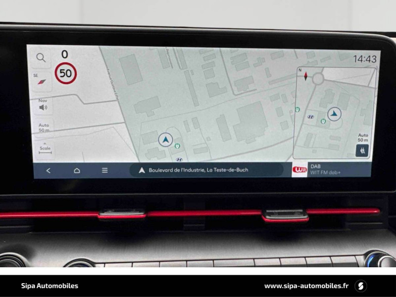 4 prises USB-C; un port de données et une prise de recharge AV, 2 prises de recharge AR / 7 airbags: frontaux conducteur et passager, latéraux AV, rideaux AV/AR, central AV / Accès mains-libres et démarrage sans clé / Alerte de présence de passager AR / Assistance active à la conduite sur autoroute / Assistance active au maintien et au suivi de voie / Atmosphère intérieure N Line intérieur noir intégral avec inserts décoratifs, liserés et surpiqures rouges, ciel de toit noir, pédalier façon aluminium / Câble de recharge pour prise domestique / Caméra de recul avec lignes de guidage dynamiques / Chargeur embarqué tri-phasé 11kW / Chargeur sans fil pour téléphone compatible / Climatisation automatique bi-zone avec fonction Driver Only et capteur de désembuage automatique du pare-brise / Compteurs numériques 12,3" / Contrôle de traction électronique ETC / Contrôle de trajectoire électronique (ESC) / Design N Line - jantes alliage 19" - bouclier AV, bouclier AR et jupes latérales spécifiques - rétroviseurs extérieurs noir laqué - ligne de caisse noire / Détection de fatigue du conducteur / Drive Mode / eCall : appel d'urgence automatique aux services de secours avec géolocalisation du véhicule / Eclairage d'ambiance intérieur à LED personnalisable / Feux AV bi-LED type projection avec clignotants à LED / Feux de route intelligents / Feux "Seamless Horizon" avec bandeau LED / Filet de coffre / Freinage d'urgence autonome avec reconnaissance véhicule, piéton, cycliste et fonction intersection / Freinage régénératif intelligent / Frein de parking électrique avec fonction auto-hold / Garantie 5 ans (kilométrage illimité) / Jantes alliage 19'' 235/45 R19 / 7.5J X 19 / Ouïes de ventilation AR / Palettes de freinage régénératif modulable au volant / Pare-brise avec film acoustique / Peinture Engine Red / Plancher de coffre modulable / Planificateur de trajets / Poches aumonières au dos des sièges AV / Prise de recharge rapide Combo Type 2 / Programmation de la recharge et de la ventilation / Rails de toit / Réception radio numérique terrestre (DAB) / Reconnaissance des panneaux de limitation de vitesse avec limiteur de vitesse intelligent / Rétroviseurs intérieur jour/nuit automatique / Services connectés BlueLink avec carte SIM incluse - Programmation à distance de la charge de la batterie et de la ventilation - Transmission de destination au système de navigation à distance - Géolocalisation du véhicule - Historique des trajets - Statut du véhicule (portes, moteur, ventilation) - Diagnostic / Siège conducteur avec support lombaire électrique / Système audio RDS, MP3, 4 HPs, 2 tweeters / Système de chauffage de la batterie / Système de navigation Europe avec programme de mise à jour à distance et services Hyundai Live: (information trafic, bornes de recharge, emplacements de stationnement, météo, points d'intérêt et zones de danger) / Système de préconditionnement de la batterie / Système ISOFIX pour siège enfant aux places latérales AR / Système multimédia avec écran couleur tactile 12,3" / Transmission à commande électrique / Vitres électriques AV/AR et séquentielle à l'AV / Volant chauffant