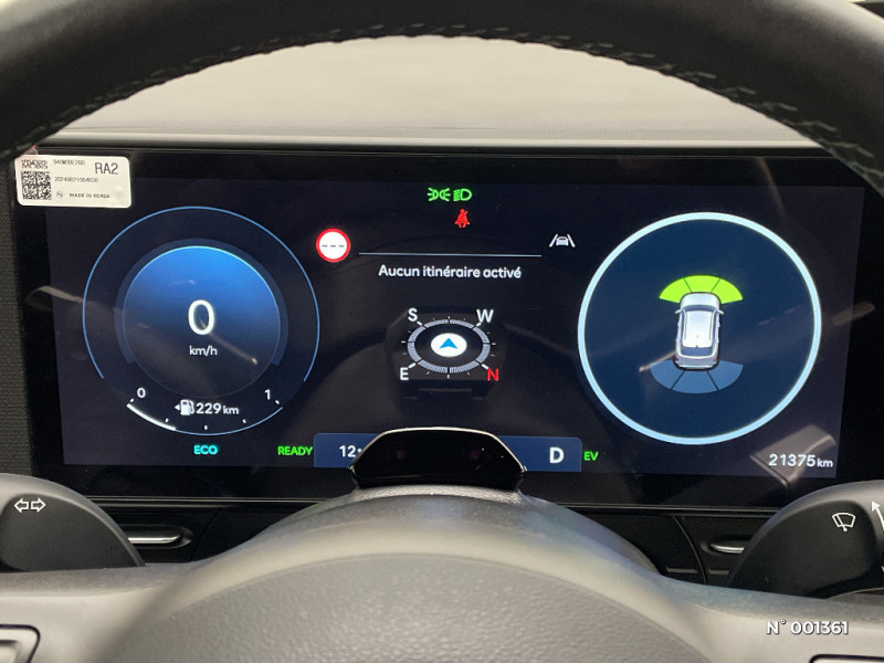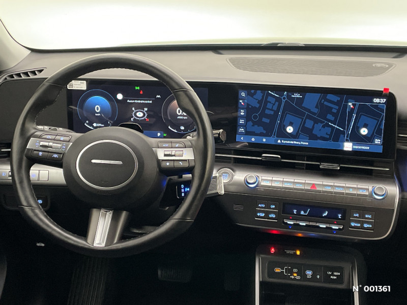 Système multimédia avec écran couleur tactile 12,3" / Alerte de circulation transversale à l'AR avec fonction freinage / Alerte de présence de passager AR / eCall : appel d'urgence automatique aux services de secours avec géolocalisation du véhicule / Filet de coffre / Services connectés BlueLink avec carte SIM incluse / Pare-brise avec film acoustique / Assistance active à la conduite sur autoroute / Surveillance active des angles morts / Transmission à commande électrique / Assistance à la sortie du véhicule pour passagers AR / Freinage anti multi-collisions / Détection de fatigue du conducteur / Compteurs numériques 12.3" / Assistance active au maintien et au suivi de voie / Ligne de caisse satinée / Skis AV et AR grain métal / 7 Airbags: frontaux conducteur et passager, latéraux AV, rideaux AV/AR, central AV / Freinage d'urgence autonome avec reconnaissance véhicule, piéton, cycliste et fonction intersection / Reconnaissance des panneaux de limitation de vitesse avec limiteur de vitesse intelligent / 4 prises USB-C; un port de données et une prise de recharge AV, 2 prises de recharge AR / Climatisation automatique bi-zone avec fonction Driver Only et capteur de désembuage automatique du pare-brise / Drive Mode (Eco, Sport, Snow) / Système de navigation Europe avec programme de mise à jour à distance et services Hyundai Live / Poches aumonières au dos des sièges AV / Eclairage d'ambiance à LED personnalisable / Freinage régénératif modulable via palettes au volant / Rétroviseur intérieur jour/nuit automatique / Système ISOFIX pour siège enfant aux places latérales AR / Vitres électriques AV/AR et séquentielle à l'AV / Système d'accès mains-libres et démarrage sans clé / Caméra de recul avec lignes de guidage dynamiques / Ouïes de ventilation AR / Verrouillage automatique des portes en roulant / Volant chauffant / Accoudoir AR avec porte-gobelets intégré / Plancher de coffre modulable / Siège conducteur avec support lombaire électrique / Poignées de portes intérieures grain métal / Feux de route intelligents / Rails de toit / Système audio RDS, compatible MP3, 4HP et 2 tweeters / Frein de parking électrique avec fonction auto-hold / Chargeur sans fil pour téléphone compatible / Réception radio numérique terrestre (DAB) / Protections d'ailes gris anthracite / Console de rangement sous accoudoir AV