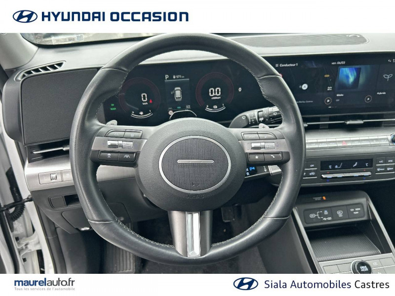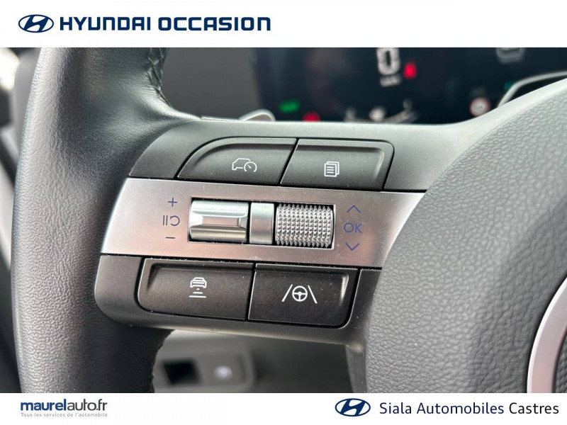4 prises USB-C; un port de données et une prise de recharge AV, 2 prises de recharge AR / 7 airbags: frontaux conducteur et passager, latéraux AV, rideaux AV/AR, central AV / Accoudoir AR avec porte-gobelets intégré / Alerte de présence de passager AR / Assistance active à la conduite sur autoroute / Assistance active au maintien et au suivi de voie / Caméra de recul avec lignes de guidage dynamiques / Climatisation automatique bi-zone avec fonction Driver Only et capteur de désembuage automatique du pare-brise / Console de rangement sous accoudoir AV / Détection de fatigue du conducteur / Drive Mode (Eco, Sport, Snow) / eCall: appel d'urgence automatique aux services de secours avec géolocalisation du véhicule / Feux de route intelligents / Filet de coffre / Freinage anti multi-collisions / Freinage d'urgence autonome avec reconnaissance véhicule, piéton, cycliste et fonction intersection / Freinage régénératif modulable via palettes au volant / Frein de parking électrique avec fonction auto-hold / Pare-brise avec film acoustique / Plancher de coffre modulable / Protections d'ailes noires / Réception radio numérique terrestre (DAB) / Reconnaissance des panneaux de limitation de vitesse avec limiteur de vitesse intelligent / Services connectés BlueLink avec carte SIM incluse / Système audio RDS, compatible MP3, 4HP et 2 tweeters / Système d'accès mains-libres et démarrage sans clé / Système de navigation Europe avec programme de mise à jour à distance et services Hyundai Live / Système ISOFIX pour siège enfant aux places latérales AR / Système multimédia avec écran couleur tactile 12,3" / Transmission à commande électrique / Verrouillage automatique des portes en roulant / Vitres électriques AV/AR et séquentielle à l'AV