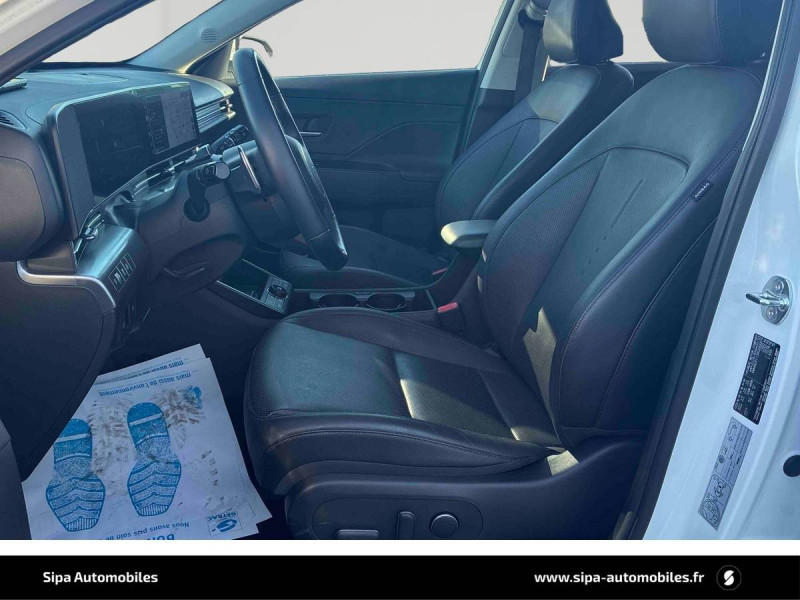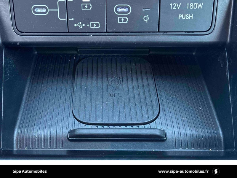 4 prises USB-C; un port de données et une prise de recharge AV, 2 prises de recharge AR / 7 airbags: frontaux conducteur et passager, latéraux AV, rideaux AV/AR, central AV / ABS avec EBD, AFU et ESP / Accoudoir AR avec porte-gobelets intégré / Affichage caméra des angles morts / Aide au stationnement à distance via télécommande AV/AR / Aide au stationnement AR avec fonction freinage / Aide au stationnement AV et AR avec capteurs latéraux / Alerte de circulation transversale AR avec fonction freinage / Alerte de présence de passager AR / Assistance active à la conduite sur autoroute / Assistance active au maintien et au suivi de voie / Assistance à la sortie du véhicule pour passagers AR / Boîte automatique 6 rapports / Boîte automatique 7 rapports / Caméra 360° / Caméra de recul avec lignes de guidage dynamiques / Chargeur sans fil pour téléphone compatible / Clef digitale; accès et démarrage par smartphone / Climatisation automatique bi-zone avec fonction Driver Only et capteur de désembuage automatique du pare-brise / Compteurs numériques 12,3" / Console de rangement sous accoudoir AV / Détection de fatigue du conducteur / Drive Mode (Eco, Sport, Snow) / eCall: appel d'urgence automatique aux services de secours avec géolocalisation du véhicule / Eclairage d'ambiance à LED personnalisable / Feux AV bi-LED type projection / Feux de route intelligents / Feux "Seamless Horizon" avec bandeau LED / Filet de coffre / Freinage anti multi-collisions / Freinage d'urgence autonome avec reconnaissance véhicule, piéton, cycliste et fonction intersection / Freinage régénératif modulable via palettes au volant / Frein de parking électrique avec fonction auto-hold / Hayon mains-libres intelligent / Ligne de caisse satinée / Ouïes de ventilation AR / Pare-brise avec film acoustique / Plancher de coffre modulable / Poches aumonières au dos des sièges AV / Poignées de portes intérieures grain métal / Protections d'ailes gris anthracite / Rails de toit / Reconnaissance des panneaux de limitation de vitesse avec limiteur de vitesse intelligent / Rétroviseur intérieur jour/nuit automatique / Sellerie cuir (dossier et assise) / Services connectés BlueLink avec carte SIM incluse / Siège conducteur avec support lombaire électrique / Skis AV et AR grain métal / Surveillance active des angles morts / Système anti-patinage (TCS) / Système audio premium Bose, 5 HP, 2 tweeters et subwoofer / Système d'accès mains-libres et démarrage sans clé / Système de navigation Europe avec programme de mise à jour à distance et services Hyundai Live / Système ISOFIX pour siège enfant aux places latérales AR / Système multimédia avec écran couleur tactile 12,3" / Verrouillage automatique des portes en roulant / Vitres électriques AV/AR et séquentielle à l'AV / Volant chauffant