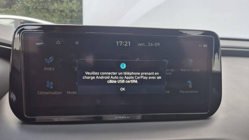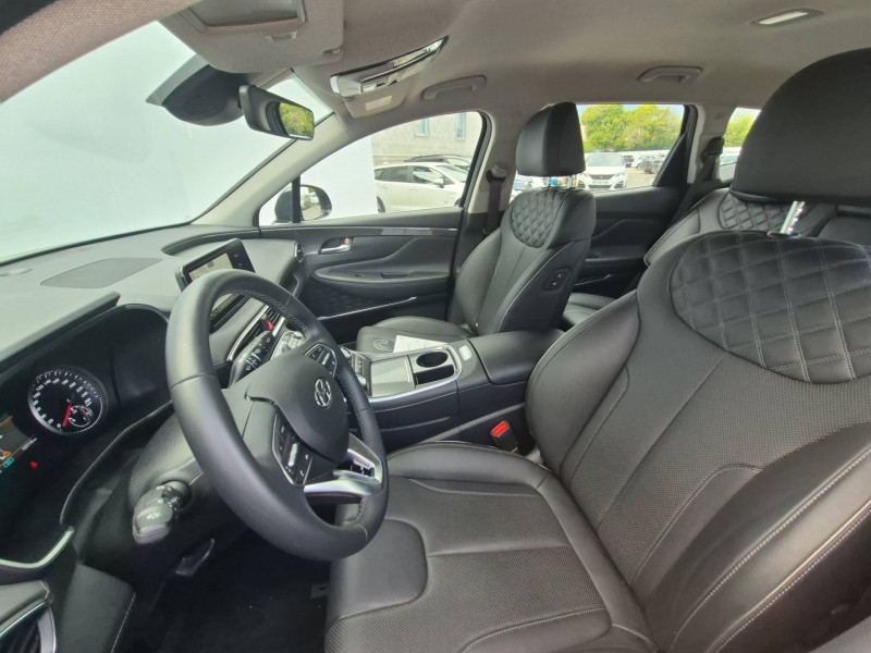 eCall : appel d'urgence automatique aux services de secours avec géolocalisation du véhicule / Rétroviseur intérieur jour/nuit automatique / Système de navigation Europe avec programme de mise à jour de la cartographie et services Hyundai Live / Verrouillage automatique des portes en roulant / ABS et EBD / Airbags rideaux AV / AR (de la première à la deuxième rangée) / Alarme périmétrique / Alerte de circulation transversale AR avec fonction freinage / Alerte de présence de passager AR / Antenne de toit type requin en effet verre / Assistance active au suivi de voie / Assistance à la sortie du véhicule / Cache-bagages à enrouleur / Calandre finition chromée / Caméra de recul avec lignes de guidage dynamiques / Chargeur sans fil pour téléphone compatible / Compatibilité Apple CarPlay et Android Auto - connexion sans fil / Configuration 7 places / Console centrale avec bac de rangement sous l'accoudoir AV / Contrôle de trajectoire électronique ESP avec gestion de stabilité pour remorque / Contrôle de vitesse en descente / Direction assistée électrique asservie à la vitesse / Dossier AR (rang 2) rabattable 60/40 à distance avec commande depuis le coffre / Drive Mode / Détection de fatigue du conducteur / Eclairage d'accueil sous les rétroviseurs / Entourage de vitres chromé / Feux de route intelligents / Filet de coffre / Frein de parking électrique avec fonction auto-hold / Freinage anti multi-collisions / Freinage d'urgence autonome avec reconnaissance piéton, cycliste et fonction intersection / Ordinateur de bord couleur 4.2" multifonction / Ouïes de ventilation AR / Poches aumonières au dos des sièges AV / Poignées de portes extérieures ton carroserie / Poignées de portes intérieures grain métal / Porte-gobelets AV/AR / Prise Type 2 - 3.3 kW / Prises USB rang 1 / rang 2 / Programmation de la charge depuis le véhicule / Protections AV/AR grain métal / Protections de bas de caisse chromées / Rails de toit / Roue de secours de taille normale / Réception radio numérique terrestre (DAB) / Rétroviseurs électriques dégivrants, rabattables électriquement avec clignotants intégrés / Services connectés BlueLink avec carte SIM incluse / Siège conducteur avec support lombaire électrique / Sièges AR coulissants et inclinables / Surveillance des angles morts avec assistance active au changement de voie / Système audio premium Krell avec subwoofer et amplificateur / Système audio RDS, MP3, 4 HPs, 2 tweeters / Système d'accès mains-libres et démarrage sans clé / Système ISOFIX pour siège enfant aux places latérales AR et sur le siège passager AV / Système multimédia avec écran couleur tactile 10.25" et reconnaissance vocale / Transmission à commande électrique / Verrouillage du câble pendant la charge / Vide-poches dans portes AV/AR
