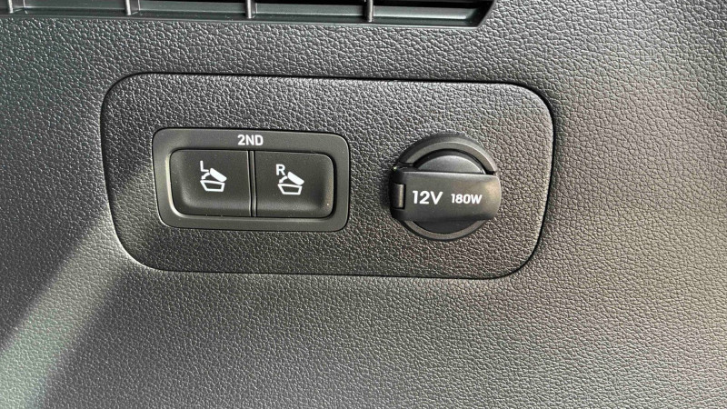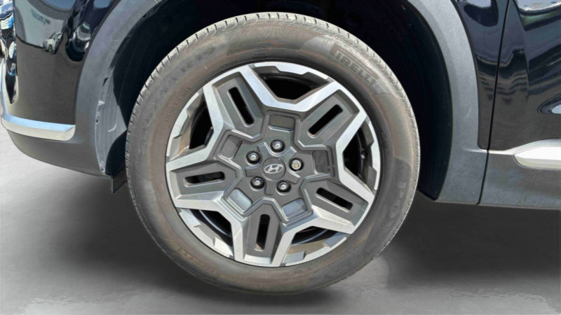 ABS et EBD / Airbags rideaux AV / AR (de la première à la deuxième rangée) / Alarme périmétrique / Alerte de circulation transversale AR avec fonction freinage / Alerte de présence de passager AR avec capteur ultrason / Antenne de toit type requin en effet verre / Assistance active au suivi de voie / Assistance à la sortie du véhicule / Cache-bagages à enrouleur / Calandre finition chrome foncé / Caméra de recul avec lignes de guidage dynamiques / Chargeur sans fil pour téléphone compatible / Compatibilité Apple CarPlay et Android Auto - connexion sans fil / Compteurs digitaux 12.3" / Configuration 7 places / Console centrale avec bac de rangement sous l'accoudoir AV / Contrôle de trajectoire électronique ESP avec gestion de stabilité pour remorque / Contrôle de vitesse en descente / Détection de fatigue du conducteur / Direction assistée électrique asservie à la vitesse / Dossier AR (rang 2) rabattable 60/40 à distance avec commande depuis le coffre / Drive Mode / eCall: appel d'urgence automatique aux services de secours avec géolocalisation du véhicule / Eclairage additionnel en virage / Eclairage d'accueil sous les rétroviseurs / Eclairage d'ambiance intérieur à LED personnalisable / Entourage de vitres chromé / Feux de route intelligents / Filet de coffre / Freinage d'urgence autonome avec reconnaissance piéton, cycliste et fonction intersection / Frein de parking électrique avec fonction auto-hold / Hayon mains-libres intelligent / Ouïes de ventilation AR / Pare-soleils intégrés dans les portes AR / Planche de bord avec habillage simili-cuir / Poches aumonières au dos des sièges AV / Poignées de portes extérieures avec insert chromé / Poignées de portes intérieures grain métal / Porte-gobelets AV/AR / Prises USB rang 1 / rang 2 / Protections AV/AR grain métal / Protections de bas de caisse chromées / Protections de seuils de portes grain métal / Rails de toit / Réception radio numérique terrestre (DAB) / Rétroviseur intérieur jour/nuit automatique / Rétroviseurs électriques dégivrants, rabattables électriquement avec clignotants intégrés / Roue de secours de taille normale / Sellerie cuir (assise et dossier) / Services connectés BlueLink avec carte SIM incluse / Siège conducteur avec support lombaire électrique / Sièges AR coulissants et inclinables / Surveillance des angles morts avec assistance active au changement de voie / Système audio premium Krell avec subwoofer et amplificateur / Système audio RDS, MP3, 4 HPs, 2 tweeters / Système d'accès mains-libres et démarrage sans clé / Système de navigation Europe avec programme de mise à jour de la cartographie et services Hyundai Live / Système ISOFIX pour siège enfant aux places latérales AR et sur le siège passager AV / Système multimédia avec écran couleur tactile 10.25" et reconnaissance vocale / Transmission à commande électrique / Verrouillage automatique des portes en roulant / Vide-poches dans portes AV/AR