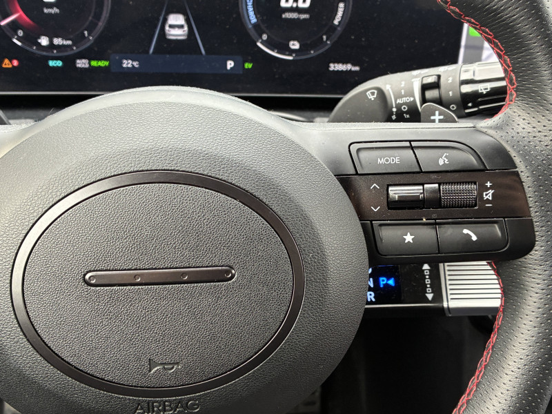 Capteur de désembuage automatique du pare-brise / Clignotants AV à LED / Climatisation automatique bi-zone avec désembuage automatique (avec mode Multi-air AV) / eCall : appel d'urgence automatique aux services de secours avec géolocalisation du véhicule / Eclairage d'ambiance intérieur à LED personnalisable / Feux AR à LED avec bandeau lumineux / Feux de jour et de position AV à LED à effet miroir / Pédalier façon aluminium / Rétroviseurs intérieur jour/nuit automatique / Système de navigation Europe avec programme de mise à jour de la cartographie / Verrouillage automatique des portes en roulant / Volant sport "N Line" gainé cuir avec surpiqûres rouges / Alarme périmétrique / Alerte de circulation transversale à l'AR avec fonction freinage / Alerte de présence de passager AR avec capteur ultrason / Antenne de toit type requin / Assistance active au suivi de voie / Assistance active à la conduite sur autoroute / Assistance à la sortie du véhicule / Boucliers AV et AR "N Line" / Calandre chromée "Parametric Dynamics N Line" / Caméra de recul avec lignes de guidage dynamiques / Chargeur sans fil pour téléphone compatible / Ciel de toit noir / Compatibilité Apple CarPlay et Android Auto - connexion sans fil / Compteurs numériques 12.3" / Console centrale avec bac de rangement sous l'accoudoir AV / Contrôle de trajectoire électronique ESP avec gestion de stabilité pour remorque / Contrôle de vitesse en descente / Direction assistée électrique asservie à la vitesse / Dossier AR rabattable 40/20/40 à distance avec commande depuis le coffre / Double sortie d'échappement / Drive Mode / Détection de fatigue du conducteur / Eclairage additionnel en virage / Feux de route intelligents / Filet de coffre / Frein de parking électrique avec fonction auto-hold / Freinage anti multi-collisions / Freinage d'urgence autonome avec fonction intersections / Freinage d'urgence autonome avec reconnaissance piétons et cyclistes / Freinage régénératif intelligent / Jonc de vitres noir / Mises à jour sans fil à distance OTA / Palettes de freinage régénératif modulable au volant / Pare-brise avec film acoustique / Pare-soleil intégrés dans les portes AR / Passages de roues et bas de caisse couleur carrosserie / Planche de bord avec insert rouge "N Line" / Poches aumonières au dos des sièges AV / Poignées de portes extérieures ton carroserie / Poignées de portes intérieures grain métal / Porte-gobelets AV/AR / Prise USB type C à l'AV / Prises 12V (AV et coffre) et USB AV/AR / Protections AV et AR grain métal / Protections de seuils de portes grain métal / Rails de toit / Réception radio numérique terrestre (DAB) / Rétroviseurs électriques dégivrants, rabattables électriquement avec clignotants intégrés / Siège conducteur avec support lombaire électrique / Sièges AR inclinables / Surveillance des angles morts avec assistance active au changement de voie / Système d'accès mains-libres et démarrage sans clé / Système ISOFIX pour siège enfant aux places latérales AR / Système multimédia avec écran couleur tactile 12,3" avec reconnaissance vocale en ligne / Transmission à commande électrique / Vide-poches dans portes AV/AR / Volant chauffant