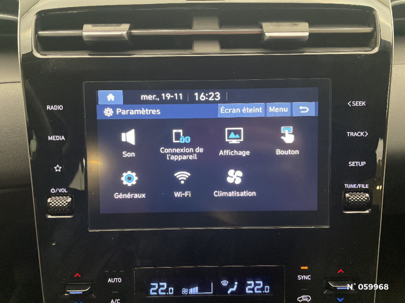 Vide-poches dans portes AV/AR / Sièges AR inclinables / Volant et pommeau de levier de vitesses gainés de cuir / Siège conducteur avec support lombaire électrique / Poignées de portes intérieures grain métal / Feux de route intelligents / Rails de toit / Poignées de portes extérieures ton carroserie / Détection de fatigue du conducteur / Frein de parking électrique avec fonction auto-hold / Drive Mode / Caméra de recul avec lignes de guidage dynamiques / Verrouillage automatique des portes en roulant / Rétroviseurs intérieur jour/nuit automatique / Porte-gobelet AV/AR / Rétroviseurs extérieurs ton carrosserie / Capteur de désembuage automatique du pare-brise / Cache-bagages à enrouleur / Vitres AV séquentielles / Alarme périmétrique / Contrôle de vitesse en descente / Chargeur sans fil pour téléphone compatible / Réception radio numérique terrestre (DAB) / Antenne de toit type requin / Assistance active au suivi de voie / Système audio RDS, MP3, 4 haut-parleurs, 2 tweeters / Console centrale avec bac de rangement sous l'accoudoir AV / Alerte de circulation transversale à l'AR avec fonction freinage / Contrôle de trajectoire électronique ESP avec gestion de stabilité pour remorque / Rétroviseurs électriques dégivrants, rabattables électriquement avec clignotants intégrés / eCall : appel d'urgence automatique aux services de secours avec géolocalisation du véhicule / Filet de coffre / Peinture solide Engine Red / Poches aumonières au dos des sièges AV / Système de navigation Europe avec programme de mise à jour de la cartographie et services Hyundai live / Services connectés BlueLink avec carte SIM incluse / Freinage d'urgence autonome avec reconnaissance piétons et cyclistes / Compteurs numériques 10.25" / Dossier AR rabattable 40/20/40 à distance avec commande depuis le coffre / Prises 12V (AV et coffre) et USB AV/AR / Peinture Engine Red / Assistance à la sortie du véhicule / Transmission à commande électrique / Système ISOFIX pour siège enfant aux places latérales AR / Surveillance des angles morts avec assistance active au changement de voie / Compatibilité Apple CarPlay et Android Auto - connexion sans fil / Système multimédia avec écran couleur tactile 10.25" et reconnaissance vocale en ligne / Freinage anti multi-collisions / Climatisation automatique bi-zone avec désembuage automatique (avec mode Multi-air AV) / Jonc de vitres noir / Direction assistée électrique asservie à la vitesse