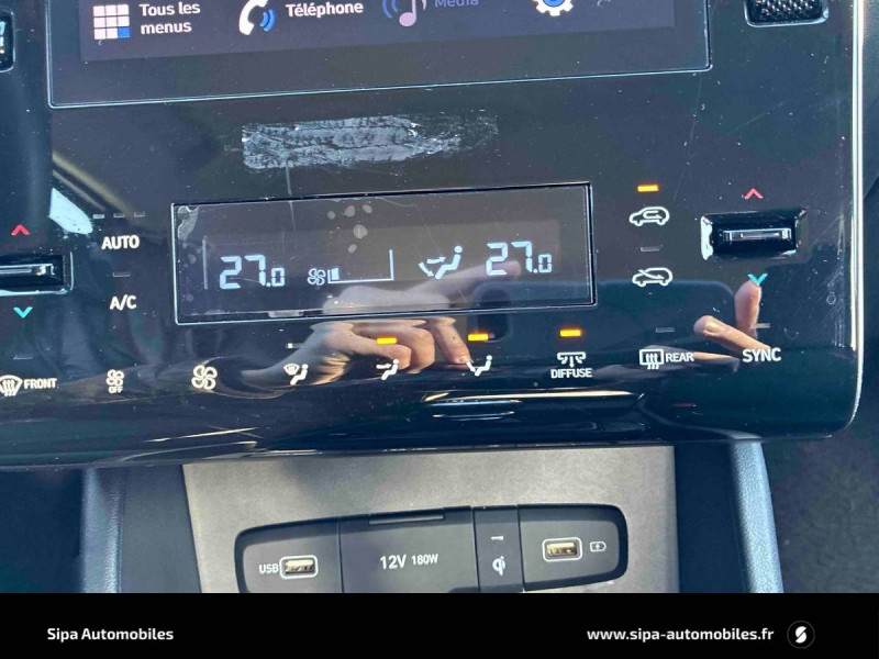 Alarme périmétrique / Alerte de circulation transversale AR / Antenne de toit type requin en effet verre / Assistance active au suivi de voie / Assistance à la sortie du véhicule / Cache-bagages à enrouleur / Caméra de recul avec lignes de guidage dynamiques / Capteur de désembuage automatique du pare-brise / Chargeur sans fil pour téléphone compatible / Climatisation automatique bi-zone avec désembuage automatique (avec mode Multi-air AV) / Compteurs numériques 10,25" / Console centrale avec bac de rangement sous l'accoudoir AV / Contrôle de trajectoire électronique ESP avec gestion de stabilité pour remorque / Contrôle de vitesse en descente / Détection de fatigue du conducteur / Direction assistée électrique asservie à la vitesse / Dossier AR rabattable 40/20/40 à distance avec commande depuis le coffre / Drive Mode / eCall : appel d'urgence automatique aux services de secours avec géolocalisation du véhicule / Feux de route intelligents / Filet de coffre / Freinage anti multi-collisions / Freinage d'urgence autonome avec reconnaissance piétons et cyclistes / Frein de parking électrique avec fonction auto-hold / Poches aumonières au dos des sièges AV / Poignées de portes extérieures ton carroserie / Poignées de portes intérieures grain métal / Porte-gobelets AV/AR / Prises 12V (AV et coffre) et USB AV/AR / Rails de toit / Réception radio numérique terrestre (DAB) / Rétroviseurs électriques dégivrants, rabattables électriquement avec clignotants intégrés / Rétroviseurs extérieurs ton carrosserie / Rétroviseurs intérieur jour/nuit automatique / Services connectés BlueLink avec carte SIM incluse / Siège conducteur avec support lombaire électrique / Sièges AR inclinables / Système audio RDS, MP3, 4 HPs, 2 tweeters / Système de navigation Europe avec programme de mise à jour de la cartographie / Système de réduction catalytique sélective / Système ISOFIX pour siège enfant aux places latérales AR / Système multimédia avec écran couleur tactile 10,25" et reconnaissance vocale en ligne / Verrouillage automatique des portes en roulant / Vide-poches dans portes AV/AR / Vitres AV séquentielles / Volant et pommeau de levier de vitesses gainés de cuir