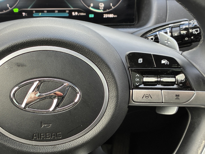 Clignotants AV à LED / Climatisation automatique tri-zone et désembuage automatique (avec mode Multi-air AV) / Commande à distance de sortie de stationnement via télécommande (AV/AR) / eCall : appel d'urgence automatique aux services de secours avec géolocalisation du véhicule / Eclairage d'ambiance intérieur à LED personnalisable / Feux AR à LED avec bandeau lumineux / Feux de jour et de position AV à LED à effet miroir / Rétroviseurs intérieur jour/nuit automatique / Système de navigation Europe avec programme de mise à jour de la cartographie / Toit ouvrant panoramique avec volet occultant électrique / Verrouillage automatique des portes en roulant / Affichage caméra des angles morts / Alarme périmétrique / Alerte de circulation transversale AR avec fonction freinage / Alerte de présence de passager AR avec capteur ultrason / Antenne de toit type requin en effet verre / Assistance active au suivi de voie / Assistance active à la conduite sur autoroute / Assistance à la sortie du véhicule pour passagers AR / Cache-bagages à enrouleur / Calandre chromée "Parametric Dynamics" / Caméra 360° / Caméra de recul avec lignes de guidage dynamiques / Chargeur sans fil pour téléphone compatible / Compatibilité Apple CarPlay et Android Auto - connexion sans fil / Compteurs numériques 10,25" / Console centrale avec bac de rangement sous l'accoudoir AV / Contrôle de trajectoire électronique ESP avec gestion de stabilité pour remorque / Contrôle de vitesse en descente / Direction assistée électrique asservie à la vitesse / Dossier AR rabattable 40/20/40 à distance avec commande depuis le coffre / Double sortie d'échappement / Drive Mode / Détection de fatigue du conducteur / Eclairage additionnel en virage / Feux de route intelligents / Frein de parking électrique avec fonction auto-hold / Freinage anti multi-collisions / Freinage d'urgence autonome avec fonction intersections / Freinage d'urgence autonome avec reconnaissance piétons et cyclistes / Hayon mains-libres intelligent / Jonc de vitres chromé / Pare-soleils intégrés dans les portes AR / Poches aumonières au dos des sièges AV / Poignées de portes extérieures ton carroserie / Poignées de portes intérieures grain métal / Porte-gobelets AV/AR / Prises 12V (AV et coffre) et USB AV/AR / Protections AV/AR grain métal / Protections de seuils de portes grain métal / Rails de toit / Réception radio numérique terrestre (DAB) / Rétroviseurs extérieurs ton carrosserie / Rétroviseurs électriques dégivrants, rabattables électriquement avec clignotants intégrés / Services connectés BlueLink avec carte SIM incluse / Siège conducteur avec support lombaire électrique / Sièges AR inclinables / Sièges AV réglables électriquement (à mémoire côté conducteur) / Surveillance des angles morts avec assistance active au changement de voie / Système audio premium Krell avec subwoofer et amplificateur / Système audio RDS, MP3, 4 HPs, 2 tweeters / Système d'accès mains-libres et démarrage sans clé / Système ISOFIX pour siège enfant aux places latérales AR / Système multimédia avec écran couleur tactile 10,25" et reconnaissance vocale en ligne / Transmission à commande électrique / Vide-poches dans portes AV/AR / Vitres AV/AR séquentielles / Volant chauffant