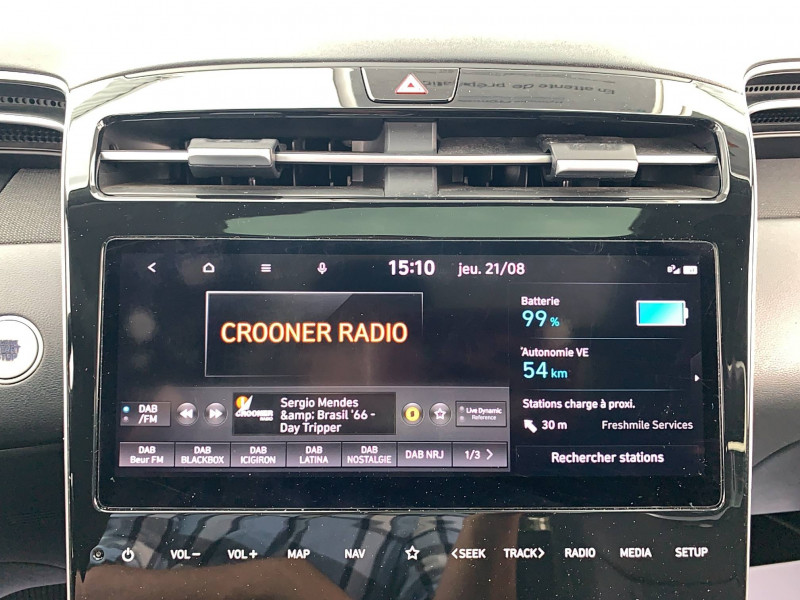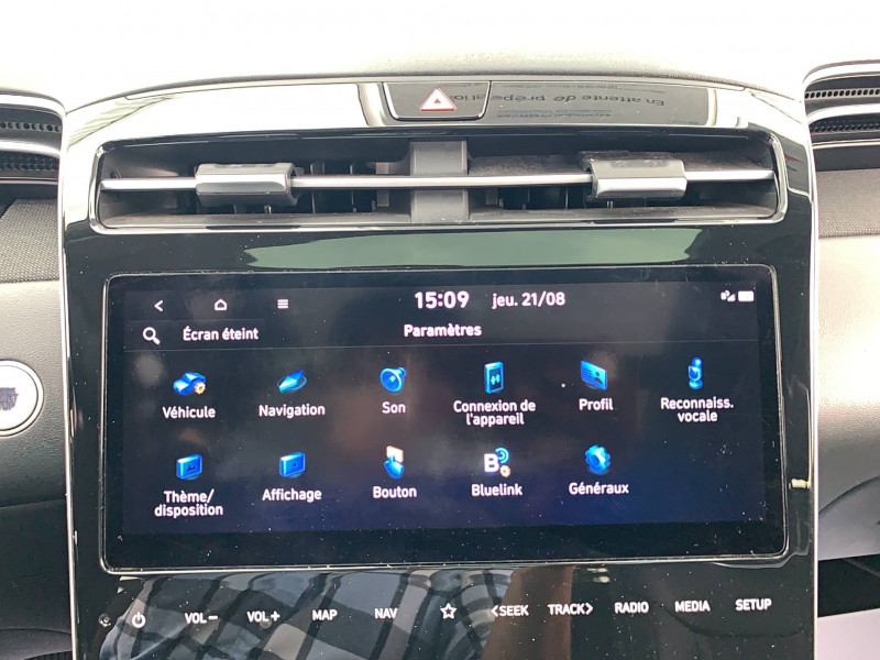 Affichage caméra des angles morts / Aide au stationnement AR avec fonction freinage / Alarme périmétrique / Alerte de circulation transversale à l'AR avec fonction freinage / Alerte de présence de passager AR avec capteur ultrason / Antenne de toit type requin en effet verre / Assistance active à la conduite sur autoroute / Assistance active au suivi de voie / Assistance à la sortie du véhicule / Câble de recharge pour prise domestique / Cache-bagages à enrouleur / Calandre chromée "Parametric Dynamics" / Caméra 360° / Caméra de recul avec lignes de guidage dynamiques / Capteur de désembuage automatique du pare-brise / Chargeur sans fil pour téléphone compatible / Clignotants AV à LED / Climatisation automatique tri-zone et désembuage automatique (avec mode Multi-air AV) / Commande à distance de sortie de stationnement via télécommande (AV/AR) / Compteurs numériques 10.25" / Console centrale avec bac de rangement sous l'accoudoir AV / Contrôle de trajectoire électronique ESP avec gestion de stabilité pour remorque / Contrôle de vitesse en descente / Détection de fatigue du conducteur / Direction assistée électrique asservie à la vitesse / Dossier AR rabattable 40/20/40 à distance avec commande depuis le coffre / Double sortie d'échappement / Drive Mode / eCall : appel d'urgence automatique aux services de secours avec géolocalisation du véhicule / Eclairage additionnel en virage / Eclairage d'ambiance intérieur à LED personnalisable / Feux AR à LED avec bandeau lumineux / Feux de jour et de position AV à LED à effet miroir / Feux de route intelligents / Filet de coffre / Freinage anti multi-collisions / Freinage d'urgence autonome avec fonction intersections / Freinage d'urgence autonome avec reconnaissance piétons et cyclistes / Frein de parking électrique avec fonction auto-hold / Hayon mains-libres intelligent / Jonc de vitres chromé / Pack Hyundai SmartSense + / Pare-soleil intégrés dans les portes AR / Poches aumonières au dos des sièges AV / Poignées de portes extérieures ton carroserie / Poignées de portes intérieures grain métal / Porte-gobelets AV/AR / Prises 12V (AV et coffre) et USB AV/AR / Prise Type 2 - 7,2 kW / Programmation de la charge depuis le véhicule / Protections AV et AR grain métal / Protections de seuils de portes grain métal / Rails de toit / Réception radio numérique terrestre (DAB) / Rétroviseurs électriques dégivrants, rabattables électriquement avec clignotants intégrés / Rétroviseurs extérieurs ton carrosserie / Rétroviseurs intérieur jour/nuit automatique / Services connectés BlueLink avec carte SIM incluse / Siège conducteur avec support lombaire électrique / Sièges AR inclinables / Sièges AV réglables électriquement (à mémoire côté conducteur) / Surveillance des angles morts avec assistance active au changement de voie / Système audio premium Krell avec subwoofer et amplificateur / Système audio RDS, MP3, 4 HPs, 2 tweeters / Système d'accès mains-libres et démarrage sans clé / Système de navigation Europe avec programme de mise à jour de la cartographie / Système ISOFIX pour siège enfant aux places latérales AR / Système multimédia avec écran couleur tactile 10.25" et reconnaissance vocale en ligne / Terrain Mode (Neige, Sable, Boue) / Toit ouvrant panoramique avec volet occultant électrique / Transmission à commande électrique / Verrouillage automatique des portes en roulant / Verrouillage du câble pendant la charge / Vide-poches dans portes AV/AR / Vitres AV/AR séquentielles / Volant chauffant