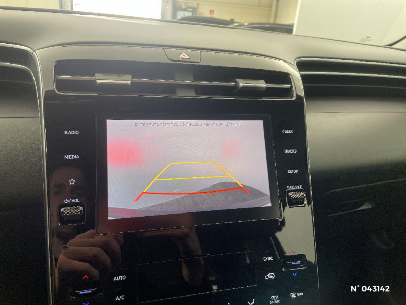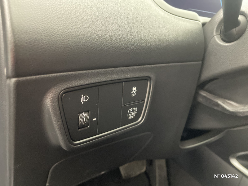 Détection de fatigue du conducteur / Frein de parking électrique avec fonction auto-hold / Drive Mode / Contrôle de vitesse en descente / Chargeur sans fil pour téléphone compatible / Réception radio numérique terrestre (DAB) / Assistance active au suivi de voie / Système audio RDS, MP3, 4 haut-parleurs, 2 tweeters / Console centrale avec bac de rangement sous l'accoudoir AV / Alerte de circulation transversale à l'AR avec fonction freinage / Contrôle de trajectoire électronique ESP avec gestion de stabilité pour remorque / Rétroviseurs électriques dégivrants, rabattables électriquement avec clignotants intégrés / eCall : appel d'urgence automatique aux services de secours avec géolocalisation du véhicule / Filet de coffre / Sièges AR inclinables / Services connectés BlueLink avec carte SIM incluse / Peinture Engine Red / Assistance à la sortie du véhicule / Transmission à commande électrique / Système de navigation Europe avec programme de mise à jour de la cartographie et services Hyundai live / Freinage d'urgence autonome avec reconnaissance piétons et cyclistes / Compteurs numériques 10.25" / Dossier AR rabattable 40/20/40 à distance avec commande depuis le coffre / Prises 12V (AV et coffre) et USB AV/AR / Surveillance des angles morts avec assistance active au changement de voie / Compatibilité Apple CarPlay et Android Auto - connexion sans fil / Système multimédia avec écran couleur tactile 10.25" et reconnaissance vocale en ligne / Freinage anti multi-collisions / Climatisation automatique bi-zone avec désembuage automatique (avec mode Multi-air AV) / Jonc de vitres noir / Antenne de toit type requin / Poches aumonières au dos des sièges AV / Système ISOFIX pour siège enfant aux places latérales AR / Direction assistée électrique asservie à la vitesse / Vide-poches dans portes AV/AR / Caméra de recul avec lignes de guidage dynamiques / Verrouillage automatique des portes en roulant / Rétroviseurs intérieur jour/nuit automatique / Porte-gobelet AV/AR / Rétroviseurs extérieurs ton carrosserie / Capteur de désembuage automatique du pare-brise / Cache-bagages à enrouleur / Vitres AV séquentielles / Alarme périmétrique / Volant et pommeau de levier de vitesses gainés de cuir / Siège conducteur avec support lombaire électrique / Poignées de portes intérieures grain métal / Feux de route intelligents / Rails de toit / Poignées de portes extérieures ton carroserie