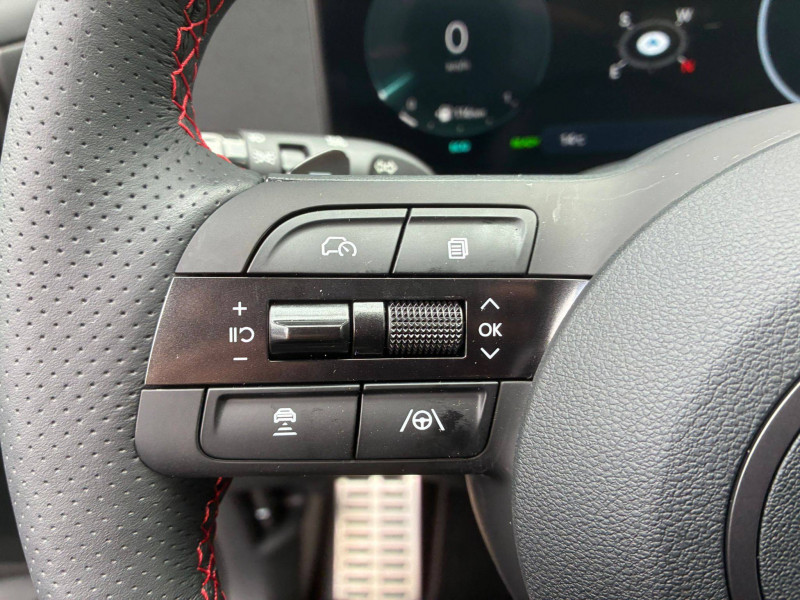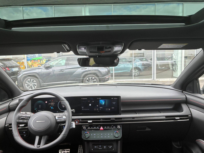 7 Airbags : central AV, frontaux AV, latéraux AV, rideaux AV/AR / ABS et EBD / Accoudoirs AV et central AR avec porte-gobelets / Alarme périmétrique / Alerte de circulation transversale AR avec fonction freinage / Alerte de présence de passager AR avec capteur ultrason / Antenne de toit type requin / Assistance active à la conduite sur autoroute / Assistance active au maintien et au suivi de voie / Assistance à la sortie du véhicule / Boîte automatique 6 rapports / Boucliers AV/AR "N Line" / Calandre finition chromée et noire "Parametric Dynamics N Line" / Caméra de recul avec lignes de guidage dynamiques / Capteur de désembuage automatique du pare-brise / Chargeur sans fil pour téléphone compatible / Ciel de toit noir / Clignotants AV à LED / Compatibilité Apple CarPlay et Android Auto - connexion sans fil / Compteurs numériques 12,3" / Console centrale avec bac de rangement sous l'accoudoir AV / Contrôle de trajectoire électronique ESP avec gestion de stabilité pour remorque / Contrôle de vitesse en descente / Détection de fatigue du conducteur / Dossier AR rabattable 40/20/40 à distance avec commande depuis le coffre / Double sortie d'échappement / Drive Mode / eCall: appel d'urgence automatique aux services de secours avec géolocalisation du véhicule / Eclairage additionnel en virage / Eclairage d'ambiance intérieur à LED personnalisable / Feux AR à LED avec bandeau lumineux / Feux de jour et de position AV à LED à effet miroir / Feux de route intelligents / Filet de coffre / Freinage anti multi-collisions / Freinage d'urgence autonome avec fonction intersections / Freinage d'urgence autonome avec reconnaissance piétons et cyclistes / Freinage régénératif intelligent modulable via palettes au volant / Frein de parking électrique avec fonction auto-hold / Garantie 5 ans (kilométrage illimité) / Garantie 8 ans de la batterie / Hayon mains-libres intelligent / Jonc de vitres noir / Mises à jour sans fil à distance OTA / Pare-brise avec film acoustique / Pare-soleils intégrés dans les portes AR / Passages de roues et bas de caisse couleur carrosserie / Pédalier façon aluminium / Peinture solide / Planche de bord avec insert rouge "N Line" / Poches aumonières au dos des sièges AV / Poignées de portes extérieures ton carroserie / Poignées de portes intérieures grain métal / Prises 12V (AV et coffre) et USB AV/AR / Prise USB type C AV / Protections AV/AR grain métal / Protections de seuils de portes grain métal / Rails de toit / Réception radio numérique terrestre (DAB) / Rétroviseurs électriques dégivrants, rabattables électriquement avec clignotants intégrés / Rétroviseurs intérieur jour/nuit automatique / Sellerie "N Line" cuir / alcantara avec surpiqûres rouges / Siège conducteur avec support lombaire électrique / Sièges AR inclinables / Surveillance des angles morts avec assistance active au changement de voie / Système audio RDS, MP3, 4 HPs, 2 tweeters / Système d'accès mains-libres et démarrage sans clé / Système de navigation Europe avec programme de mise à jour de la cartographie / Système ISOFIX pour siège enfant aux places latérales AR / Système multimédia avec écran couleur tactile 12,3" avec reconnaissance vocale en ligne / TCS (Traction Control System) / Toit ouvrant panoramique avec volet occultant électrique - Inclus plafonnier à LED / Transmission à commande électrique / Verrouillage automatique des portes en roulant / Vide-poches dans portes AV/AR / Volant chauffant / Volant sport "N Line" gainé cuir avec surpiqûres rouges