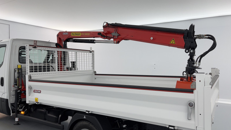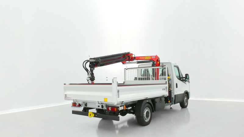 Capacité de levage 4T avec charge uniformément répartie / Dimensions utiles : 3160mm x 2000mm x 350mm / Essieu AR avec pont à moteur simple réduction et roue simple / Poids de la benne : 400kg / Rapport de pont : 3. 62 / Suspension AR mécanique à ressorts paraboliques à flexibilité réduite et Lame AR parabolique renforcée / Suspension AV double bras oscillant et lame transversale en acier / Volume utile de la benne : 2.2m³ / Protection dos cabine / 1-Calandre Noir / Rétroviseurs extérieurs de largeur max. 2200 mm / Limiteur de vitesse par réglage électronique / Support extincteur 2KG /