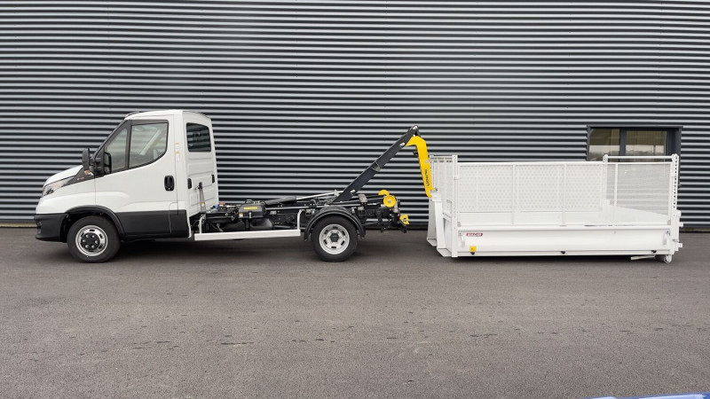 Berce: IPN 140mm Ecartement: 1060mm Hauteur Axe: 920mm / Capacité de levage : 3 Tonnes (Ampliroll) / Dimensions utiles de benne : 3160mm X 2000mm X 350mm / Poids de la benne : 540 kg / Poids du Polybras hors options et accessoires de montage : 350 kg (Ampliroll) / Pression de service : 250 bars / Rapport de pont : 4. 2 / Calandre Noir / Protection dos cabine / Support extincteur 2KG /