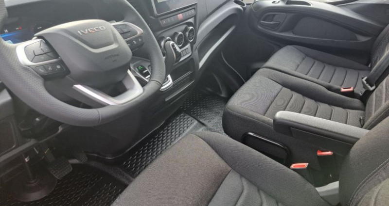 Cylindrée : 2998 cm3 EQUIPEMENTS Compresseur climatisation 180 cc, 3ème feux de stop + SPOT, Rétroviseurs chauffants à réglage électrique, Roue de secours, Limiteur de vitesse réglable électronique, Porte roue de secours dans porte à faux AR, Porte AR ouverture 270°, Climatisation automatique, Appui/têtes grand confort en mousse et textile, Calandre chromée, Siège conducteur confort suspendu, Frein de parking électrique, Ressort parabolique rigidite augmente, Régulateur de vitesse Adaptatif, Phares AV Full LED, Boîte de rangement + prise, Antibrouillards AV, Banquette passager / ceinture 3 positions / tablette dans dosier, Pneu 225/65 R16 ECO 4S, Caméra AR (lignes stationnement dynamiques), MY IVECO info/divertissement 10+ GPS, Charge USB cote conduc./passag., Assis. vocal integre multimedia, Réservoir Carburant 86L, Revêtement des sièges en tissu, Airbag conducteur/passager + prétensionneur de ceintures, Fermeture centralisée + Télécommande, Lève/vitres électriques 2 cotés, Batterie 110 Ah, Alternateur intelligent, Echappement central, Eclairage LEDs dans espace de chargement, Porte latérale coulissante côté passager, Feux et essuie/glace automatique, Alternateur 220 Ah / 12 V, Marchepied AR, Porte AR sans glace, Boîte de vitesse automatique à 8 rapports, Back sensors (new) Radar recul, Badge Extérieur chrome, Detection somnolence, Systeme ESP, Aide d´urgence maint. voie, Assist. de vitesse intelligent (ISA), Volant en cuir, 3ème feux de stop, AEBS + CITY BRAKE, Ailes sans bavettes, VOEU,