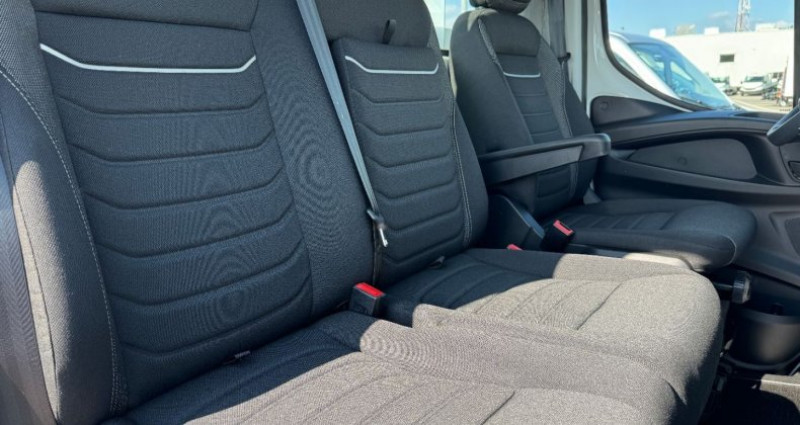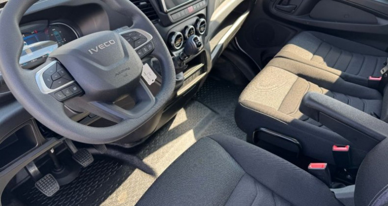 Cylindrée : 2998 cm3 EQUIPEMENTS Traverse AR de remorquage pour crochet de type automatique, Limiteur de vitesse réglable électronique, Porte roue de secours dans porte à faux AR, Ressort AR semi/elliptique + Helper, Banquette passager biplace avec ceinture 3 points + tablette rabattable, Appui/têtes grand confort en mousse et textile, Barre anti/encastrement AR abaissée, Climatisation automatique, Roue de secours, Rétroviseurs chauffants à réglage électrique, Prise électrique 12 V / 13 broches, Siège conducteur confort suspendu, Gestion feux route automatique, Compresseur climatisation 180 cc, Vitres AR cabine, Régulateur de vitesse Adaptatif, Antibrouillards AV, Rétroviseurs pour largeur max 2350 mm, MY IVECO info/divertissement 10+ GPS, Poignée d'accès cabine, Réservoir Carburant 86L, Charge USB cote conduc./passag., Assis. vocal integre multimedia, Réservoir AdBlue sous la cabine (20 l), Echappement central, Lève/vitres électriques 2 cotés, Alternateur intelligent, Volant standard, Kit comfort acoustique, Alternateur 220 Ah / 12 V, Fermeture centralisée + Télécommande, Feux et essuie/glace automatique, Pare/brise athermique, Aide d´urgence maint. voie, AEBS + CITY BRAKE, Systeme ESP, Sièges en tissu, Assist. de vitesse intelligent (ISA), VOEU,