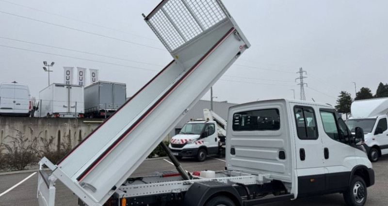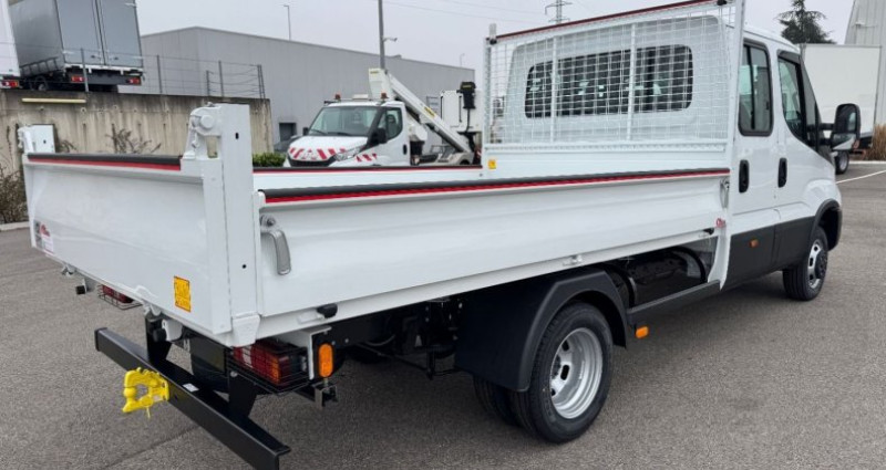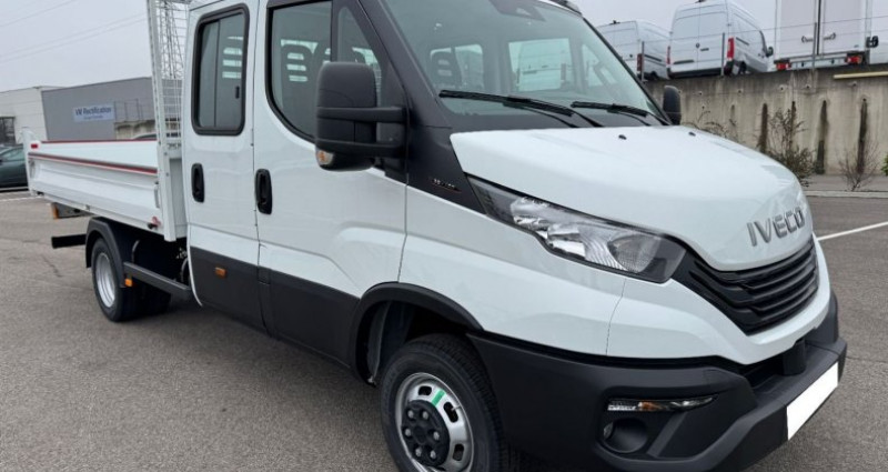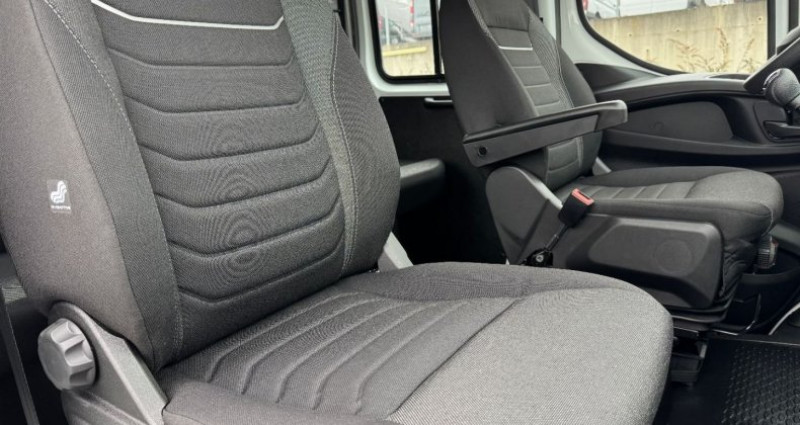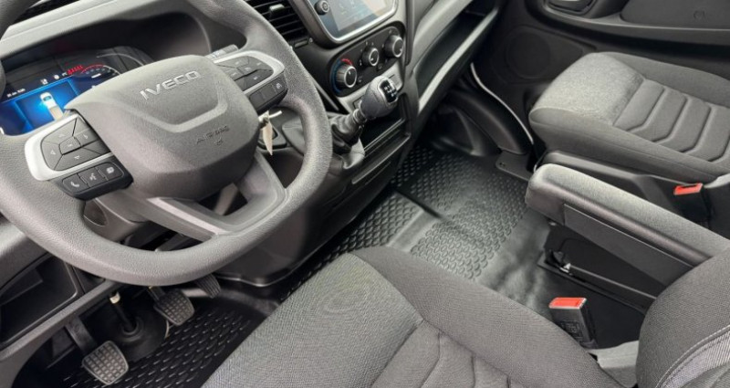 Cylindrée : 2998 cm3 EQUIPEMENTS Roue de secours, Porte roue de secours dans porte à faux AR, Limiteur de vitesse réglable électronique, Protection carter huile, Compresseur climatisation 180 cc, Climatisation manuelle, Barre anti/encastrement AR abaissée, Banquette 4 places, Vitres AR cabine, Traverse AR de remorquage pour crochet de type automatique, Régulateur de vitesse, Ressort AR semi/elliptique + Helper, Rangement au dessus pare/brise, Traction+ et Hill Descent, Siège conducteur confort suspendu, Rétroviseurs chauffants à réglage électrique, Prise électrique 12 V / 13 broches, Frein de parking électrique, Boîte de rangement + prise, Poignée d'accès cabine, Caméra AR (lignes stationnement dynamiques), Antibrouillards AV, Feux et essuie/glace automatique, MY IVECO radio tactile 7, Charge USB cote conducteur, Réservoir AdBlue sous la cabine (20 l), Echappement central, Feux AV halogènes, Lève/vitres électriques 2 cotés, Airbag conducteur/passager + prétensionneur de ceintures, Alternateur intelligent, Pare/brise athermique, Fermeture centralisée + Télécommande, Calandre noire, Volant standard, Kit comfort acoustique, Alternateur 220 Ah / 12 V, Appui/têtes standard, Badge Extérieur chrome, Assist. de vitesse intelligent (ISA), Systeme ESP, AEBS + CITY BRAKE, Sièges en tissu,