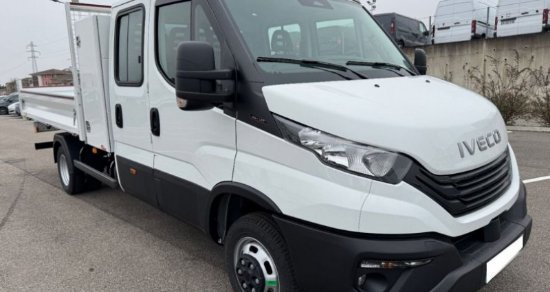 Cylindrée : 2998 cm3 EQUIPEMENTS Porte roue de secours dans porte à faux AR, Limiteur de vitesse réglable électronique, Traverse AR de remorquage pour crochet de type automatique, Roue de secours, Climatisation manuelle, Barre anti/encastrement AR abaissée, Banquette 4 places, Vitres AR cabine, Rétroviseurs chauffants à réglage électrique, Régulateur de vitesse, Ressort AR semi/elliptique + Helper, Rangement au dessus pare/brise, Protection carter huile, Compresseur climatisation 180 cc, Traction+ et Hill Descent, Siège conducteur confort suspendu, Prise électrique 12 V / 13 broches, Frein de parking électrique, Boîte de rangement + prise, Poignée d'accès cabine, Antibrouillards AV, MY IVECO radio tactile 7, Charge USB cote conducteur, Réservoir AdBlue sous la cabine (20 l), Echappement central, Lève/vitres électriques 2 cotés, Airbag conducteur/passager + prétensionneur de ceintures, Alternateur intelligent, Feux et essuie/glace automatique, Pare/brise athermique, Fermeture centralisée + Télécommande, Calandre noire, AEBS + CITY BRAKE, Volant standard, Sièges en tissu, Kit comfort acoustique, Alternateur 220 Ah / 12 V, Appui/têtes standard, Siège passager Confort fixe, Assist. de vitesse intelligent (ISA), Systeme ESP, Feux AV halogènes, Badge Extérieur chrome, VOEU,