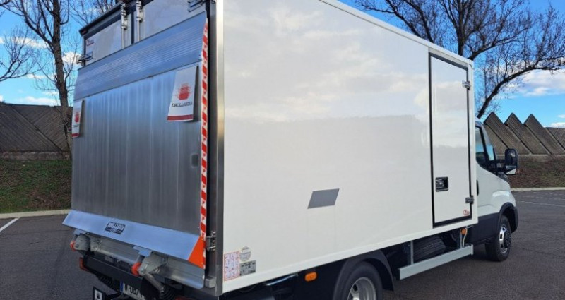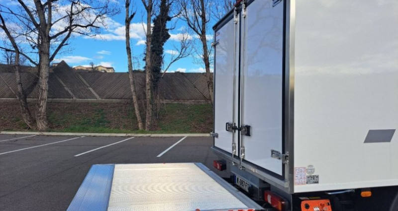 Cylindrée : 2998 cm3 EQUIPEMENTS Roue de secours, Climatisation automatique, Appui/têtes grand confort en mousse et textile, Compresseur climatisation 180 cc, Traverse AR de remorquage pour crochet de type automatique, Vitres AR cabine, Rétroviseurs chauffants à réglage électrique, Barre anti/encastrement AR abaissée, Banquette passager biplace avec ceinture 3 points + tablette rabattable, Siège conducteur confort suspendu, Rétroviseurs pour largeur max 2200 mm, Sièges en tissu, Charge USB cote conduc./passag., Antibrouillards AV, Fermeture centralisée + Télécommande, Lève/vitres électriques 2 cotés, Alternateur intelligent, Pare/brise athermique, Feux et essuie/glace automatique, Volant standard, Kit comfort acoustique, Alternateur 220 Ah / 12 V, Frein de stationnement central manuel, AEBS + CITY BRAKE, Systeme ESP, Aide d´urgence maint. voie, Réservoir AdBlue sous la cabine (20 l), Echappement central, Assist. de vitesse intelligent (ISA), Limiteur de vitesse réglable électronique, Porte roue de secours dans porte à faux AR, Ressort AR semi/elliptique + Helper, Prise électrique 12 V / 13 broches, Gestion feux route automatique, Régulateur de vitesse Adaptatif, Poignée d'accès cabine, MY IVECO info/divertissement 10+ GPS, Réservoir Carburant 86L, CAISSE FRIGO, Assis. vocal integre multimedia, VOEU,
