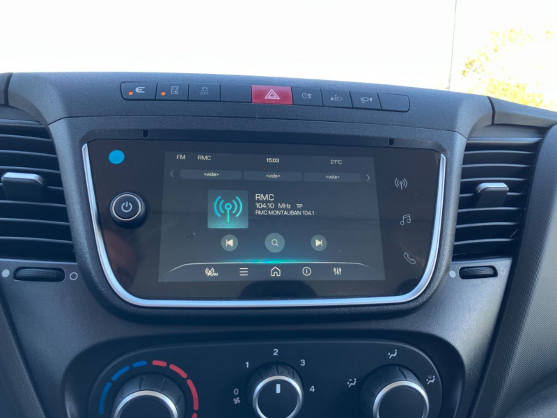 Combiné d'instruments avec écran numérique de 7'' / associéà un système d'infodivertissement àécrans tactiles. / AEBS + CITY BRAKE. / Aide d'urgence maintien voie. / Alternateur 220 Ah - 12 V. / Appui-têtes standard. / Banquette passager biplace avec ceinture. / Batterie 105 Ah. / Charge 1900-2240 kg. / Detection somnolence. / Eclairage LEDs dans espace de chargement. / Eco mode. / Feux AV halogènes. / Frein de stationnement central manuel. / Gestion feux route manuel. / Kit de gonflage. / h). / Marchepied AR. / Mesure pression pneu Wabco. / Porte AR ouverture 180°. / Prédisposition prise électrique 12 V - 13 broches. / Prédisposition remorque 3.5t. / Réservoir Carburant 63L. / Revêtement des sièges en tissu. / Siège conducteur Confort. / Suspension standard. / Systeme ESP. / Triangle de secours N1. / Volant standard