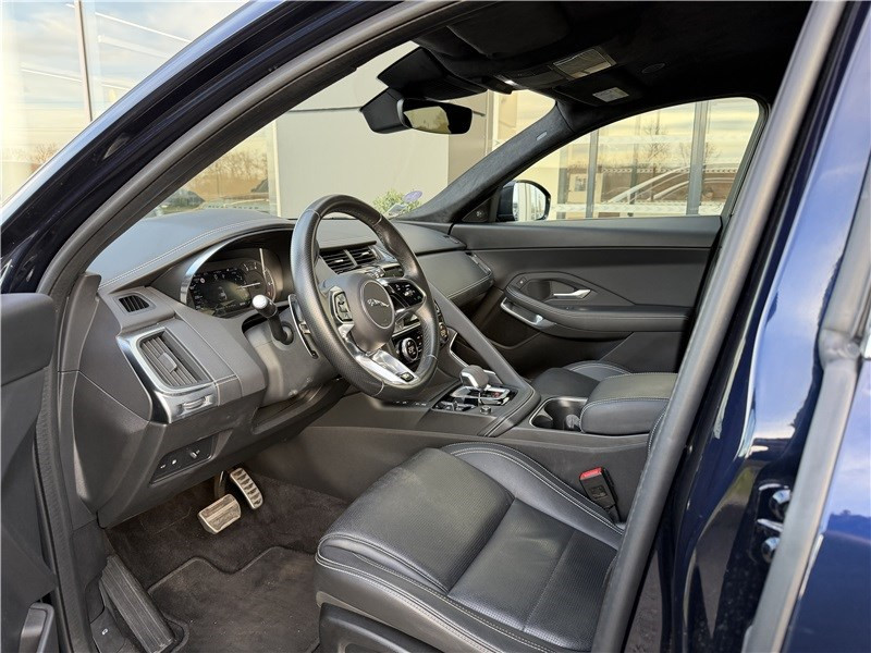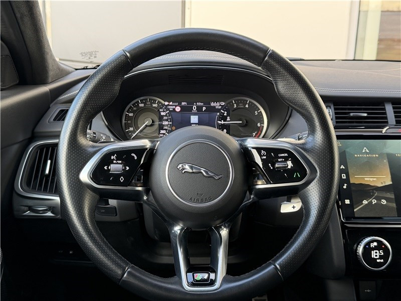 Alarme volumétrique / Câble de recharge rapide (mode 3 - Wallbox et réseau de recharge public) / Caméra stéréoscopique avec freinage d'urgence autonome / Configurable Dynamics / Contrôle de la vigilance du conducteur / Détecteurs d'obstacles AV et AR / Frein de stationnement électrique / Pack Drive Assist / Palettes de changements de vitesses Satin Chrome / Phares à LED avec feux de circulation diurnes (DRL), signature LED et clignotants AR à défilement / Plaques de seuils de portes AV en métal avec inscription R-Dynamic / Rétroviseur intérieur photosensible / Sièges AV réglables électriquement en 12x12 directions à mémoire (côté conducteur) et 10x10 / Système Audio Jaguar 180 W avec 6 HP / Système d'assistance de maintien de voie avec détecteur de somnolence / Système de navigation Pivi Pro Connecté avec écran tactile 11,4'' / Tableau de bord analogique avec écran TFT 7" au centre des compteurs de vitesse / Vitres AR fumées / Volant multifonctions à jante double en cuir pleine fleur avec repose-pouces et badge R-Dynamic