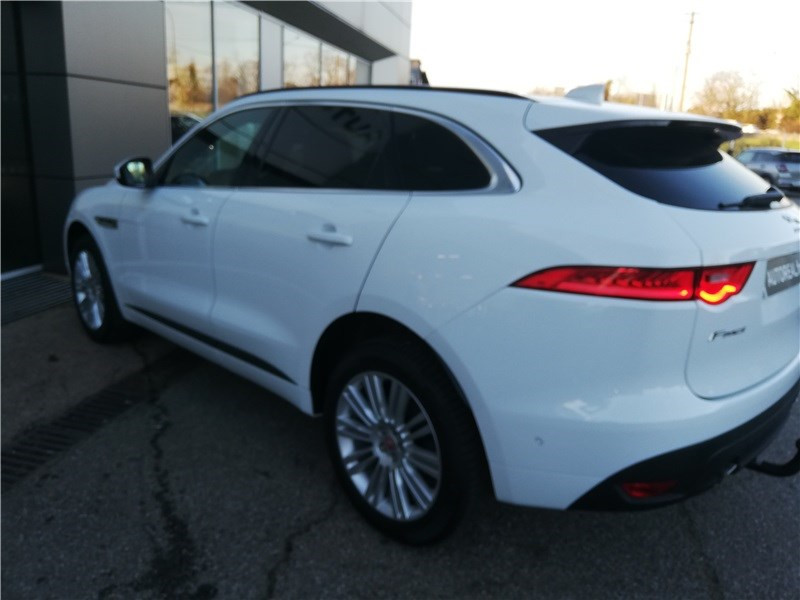 Alarme périmétrique / Caméra stéréoscopique avec freinage d'urgence autonome / Contrôle de progression toutes surfaces (ASPC) / Couvre-bagages / Détecteurs d'obstacles AR / Détecteurs d'obstacles AV / Direction à assistance électrique proportionnelle à la vitesse / Eclairage d'ambiance étendu / Ecran capacitif 8" sur la console centrale / Entourage des vitres latérales Gloss Black / Essuie-glace AV avec détecteur de pluie et allumage automatique des phares / Filet de séparation de coffre / Freinage d'urgence autonome / Frein de stationnement électrique / Garnissage de pavillon en tissu Morzine / Grille de calandre noir grainé avec entourage chromé satiné / InControl Protect / InControl Touch - Système de navigation sur carte SD, écran tactile 8" et commandes vocales Jaguar / Inserts intérieurs Gloss Black / Jaguar Drive Control avec mode Eco, Normal, Dynamic et Hiver / Jantes 19'' 5 branches doubles "Style 5038" finition Grey (Bionic - Grey) / Kit carrosserie R-Sport / Kit de réparation de pneu Jaguar / Miroirs de courtoisie intégrés aux pare-soleil / Ordinateur de bord avec écran couleur TFT de 5" entre les compteurs / Palettes de changement de vitesses en chrome / Pavillon de couleur Ebony / Phares au Xénon avec signature LED et lave-phares / Porte-gobelets (2) sur la console centrale AV / Porte-gobelets couverts dans la console centrale AV / Prise 12V sur console centrale, en rang 2 et dans le coffre + 2 ports USB en rang 2 / Prise USB sur la console centrale / Rails de coffre / Rails de toit Gloss Black / Réglage manuel des sièges en 8x8 directions (hauteur, longueur, inclinaison du dossier, appui-têtes) / Rétroviseur intérieur à inversion Jour/Nuit automatique / Seuils de portes en métal avec inscription R-Sport / Sièges en Cuir Taurus perforé / Système Audio Jaguar 80W avec 6HP / Système Bluetooth avec fonction streaming audio et compatibilité iPod / Système de réparation de pneu / Système de réparation de pneu / Tapis de sol / Technologie Stop/Start / Torque Vectoring / Volant multifonctions en cuir pleine fleur avec touches chromées et badge R-Sport
