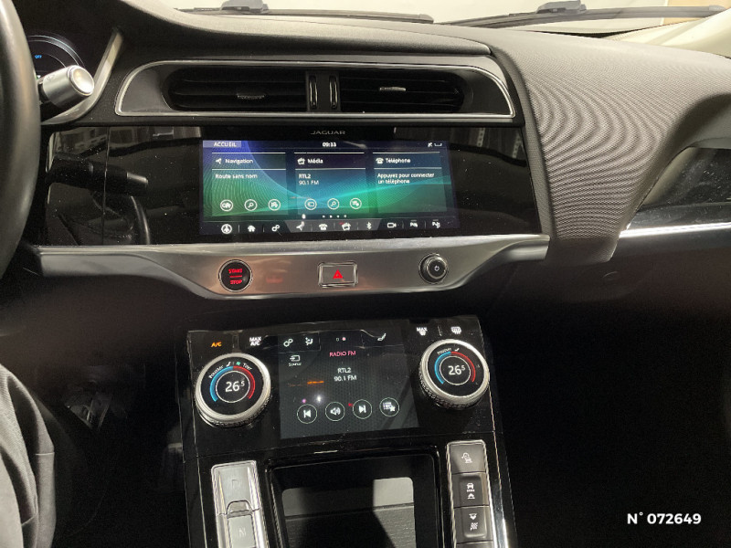 Kit anticrevaison / Kit anticrevaison / Kit anticrevaison / Lave phares haute pression / Lumière d'ambiance intérieure / Lumière d'ambiance intérieure / Miroirs de courtoisie éclairés dans les pare-soleil AV / Mode dégradé en cas de faible autonomie / Navigation Pro, Pro services et wifi hotspot / Ouverture et fermeture manuelle du hayon / Pack Online avec forfait de données intégré / Pack Smartphone / Pavillon en tissu Morzine Light Oyster / Phares LED / Phares LED sans signature LED / Plaques de seuils AV illuminées en métal avec inscription "Jaguar" / Plaques de seuils de portes AV en métal avec inscription Jaguar / Préchauffage de stationnement à distance / Préchauffage de stationnement à distance / Pro Services et WiFi hotspot / Récupération de l'énergie au freinage/décélération / Régulateur de vitesse et limiteur de vitesse / Régulateur de vitesse intelligent avec lecture des panneaux de signalisation / Remote / Rétroviseur intérieur photosensible / Rétroviseurs extérieurs chauffants photosensibles rabattables électriquement avec éclairage d'approche / Secure Tracker / Sièges réglables semi-manuellement en 8x8 directions / Sièges réglables semi-manuellement en 8x8 directions / Sièges Sport en Luxtec Ebony avec intérieur Ebony/Ebony / Smart setting (accueil du système multimédia personnalisé) / Smart setting (accueil du système multimédia personnalisé) / Surveillance du trafic en marche AR / Suspension passive / Système d'assistance au stationnement / Système d'assistance de maintien de voie avec détecteur de somnolence / Torque Vectoring / Touch Pro Duo / Voice control / Volant en cuir pleine fleur multifonction / Volant multifonctions à jante double en cuir pleine fleur / 1 Prises 12 V dans le coffre / 2 USB chargeants à l'AR / 2 USB chargeants à l'AV / Toit couleur carrosserie / InControl Apps / Aide à la sortie aux places AR Permet de sortir du véhicule en toute sécurité / Alarme périmétrique / Alarme périmétrique / Alarme volumétrique / Badge EV400 / Badge S / Banquette AR rabatable 40:20:40 avec accoudoir central et trappe à ski / Boîte à gant verrouillable / Câble de recharge domestique (mode 2 - 230V) / Câble de recharge rapide (mode 3 - Wallbox et réseau de recharge public) / Câbles de chargement - mode 2 universel et mode 3 (borne domestique) / Caméra stéréoscopique avec freinage d'urgence autonome / Caméras panoramiques 3D / Connectivité Bluetooth et streaming audio / Contrôle de la vigilance du conducteur / Système de navigation Pivi Pro Connecté avec écran tactile 10'' / Système d'entrée et de fermeture sans clé / Système multimédia InControl Touch avec écran tactile 10'' - Connectivité Bluetooth et streaming audio / Contrôle de progression toutes surfaces - ASPC / Détection de la qualité de l'air / Différentiel ouvert avec Torque Vectoring / Direction électrique à assistance variable (EPAS) / Entourage des vitres chromé / Finition Gloss Black / Finition Gloss Black / Fonction d' entrée et de fermeture sans clé / Frein de stationnement électrique / Grille de calandre Gloss Black avec entourage chromé satiné / Grille de calandre noir avec inserts Atlas et entourage chrome satiné Noble / Système 4 roues motrices AWD / Tableau de bord avec écran TFT 12.3" / Indicateur d'autonomie restante / Inserts décoratifs en finition Gloss Black / Jaguar Smart Key System / Jantes 18'' 15 branches "Style 1022" / Jantes 19" 5 branches doubles 'Style 5055' finition Gloss Dark Grey contrastée Diamond Turned 235/65R18 7.5J