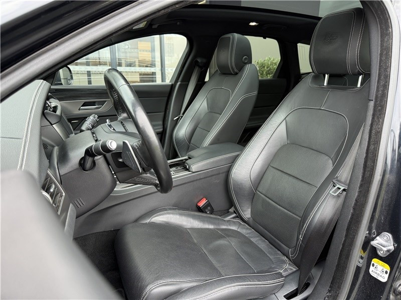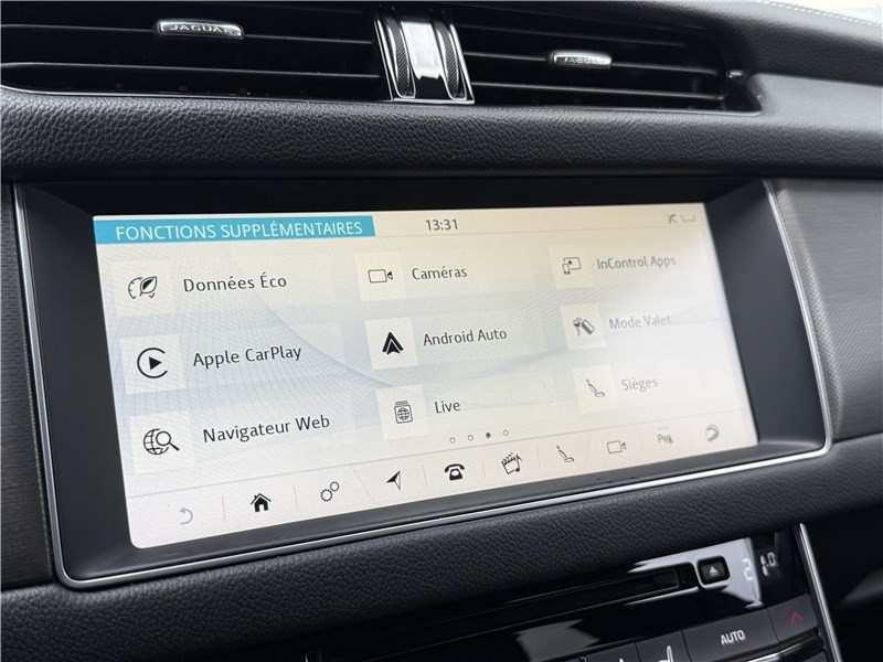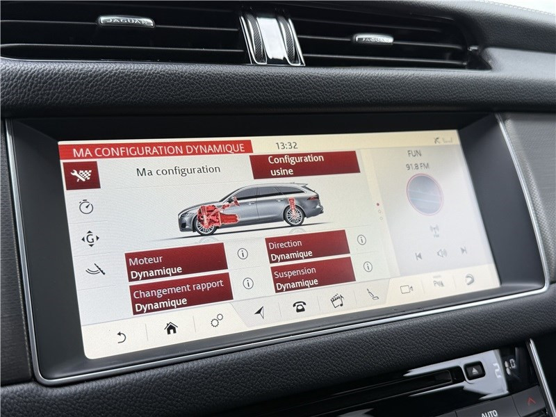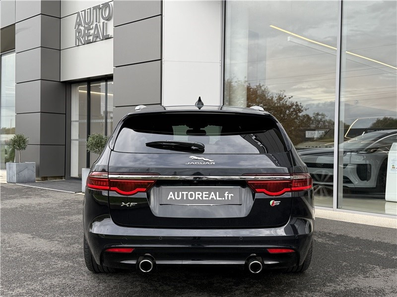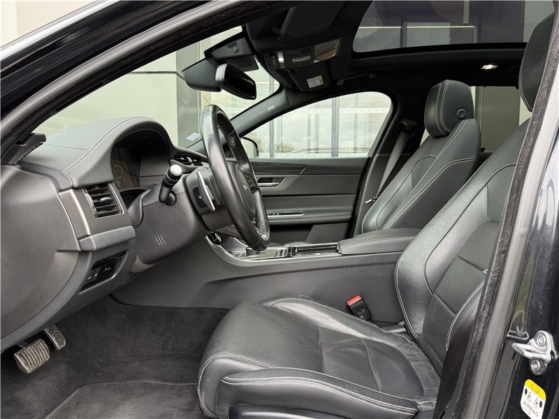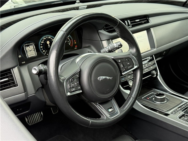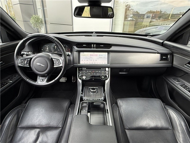 Alarme périmétrique / Colonne de direction électrique / Contrôle de progression toutes surfaces (ASPC) / Détecteurs d'obstacles AR / Détecteurs d'obstacles AV / Dynamique configurable / Entourage des vitres latérales chromé / Essuie-glace automatiques avec détecteur de pluie / Etriers de freins Rouges / Frein de stationnement électrique / Inserts intérieurs Ebène Gris / Jaguar Smart Key System - Fonction d'entrée et de fermeture sans clé / Kit carrosserie S / Ouverture et fermeture électrique du coffre avec fonction mains-libres / Palettes au volant sur transmissions automatiques / Peinture métallisée Premium Farallon Pearl Black / Phares full-LED adaptatifs avec signature LED et feux de route automatiques / Régulateur de vitesse avec limiteur automatique de vitesse / Rétroviseur intérieur à inversion Jour/Nuit automatique / Rétroviseurs extérieurs rabattables électriquement et à inversion Jour/Nuit automatique avec mémoire de position / Sièges Sport avec réglage électrique des sièges 18 directions / Sièges Sport en Cuir grainé / Suspension Adaptive Dynamics avec configurable dynamic / Système Audio Meridian 380W avec 11HP / Système Bluetooth avec fonction streaming audio et compatibilité iPod / Tapis de sol / Technologie Stop/Start / Volant multifonctions en cuir pleine fleur et badge S