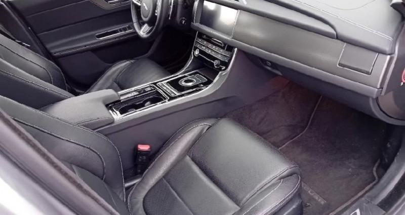 Cylindrée : 1999 cm3 Nb. Vitesse : 8 - 2 Prises 12V - 3 appuie-tête AR - 6 Airbags - Accoudoir central AR - Alarme périmétrique - Alerte de franchissement de ligne involontaire - Allumage automatique des phares - Banquette AR rabattable 40/20/40 - Boîte à gant réfrigérée - Caméra de recul - Caméra stéréoscopique avec freinage d'urgence intelligent - Climatisation automatique 2 zones - Colonne de direction électrique - Contre-portes AV/AR, console centrale, cerceau de tableau de bord - Contrôle de progression toutes surfaces (ASPC) - Contrôle de stabilité du véhicule DSC - Détecteurs d'obstacles AR - Détecteurs d'obstacles AV - Détection de la qualité de l'air - Direction électrique à assistance variable (EPAS) - Eclairage d'ambiance étendu - Ecran Touch Pro 10'' - Entourage des vitres latérales Gloss Black - Essuie-glaces automatiques avec détecteur de pluie - Finition intérieure Gloss Black - Frein de stationnement électrique - Garnissage de pavillon en Ebony - Garnissage de pavillon en Suédine - Grille de calandre noir grainé avec entourage chromé satiné - InControl Apps - InControl Touch Pro- Ecran capacitif 10'' sur la console centrale - Inserts décoratifs en finition Gloss Black - Jaguar Smart Key System- Fonction d'entrée et de fermeture sans clé - Jantes 18'' 5 branches doubles 'Style 5033' (Helix- Argent) - Kit anticrevaison Jaguar - Kit carrosserie R-Sport - Lave phares - Lecteur CD/DVD - Limiteur de vitesse adaptatif - Miroirs de courtoisie sur les pare-soleil AV - Navigation Touch Pro - Ordinateur de bord avec écran couleur TFT de 5' entre les compteurs - Ouïes latérales en chrome satiné badgées R-Sport - Pack Connect Pro - Palettes au volant - Pavillon en Suédine Ebony - Pédalier en métal - Peinture vernie - Phares au Xénon avec feux de jour à LED et lave-phares - Planche de bord en finition Dark Morse Code Aluminium - Porte-gobelets (2) dans l'accoudoir centrale AR - Porte-gobelets (2) sur la console centrale AV - Prise USB sur la console centrale - Pro Services et WiFi hotspot - Protect - Réglage électrique des sièges 10 directions (appuie-tête manuel) - Régulateur de vitesse - Régulateur de vitesse intelligent avec lecture des panneaux de signalisation - Remote Premium - Rétroviseur intérieur à inversion Jour/Nuit automatique - Rétroviseurs extérieures chauffants et réglables électriquement - Rétroviseurs extérieurs rabattables électriquement et à inversion Jour/Nuit automatique avec mémoire de position - Seuils de portes en métal illuminés - Sièges AR rabattables 40/20/40 - Sièges Sport en Cuir Grainé perforé - Suspension Sport - Système Audio Meridian- 11 HP- 380 W - Système Bluetooth d'intégration du téléphone personnel avec fonction de streaming audio et compatibilité iPod - Système d'assistance au démarrage en côte - Système de contrôle de la pression des pneus (TPMS) - Système Torque Vectoring - Tableau de bord virtuel avec écran TFT 12.3' - Tapis de sol Premium - Technologie Stop/Start - Volant multifonctions en cuir pleine fleur avec touches chromées et badge R-Sport