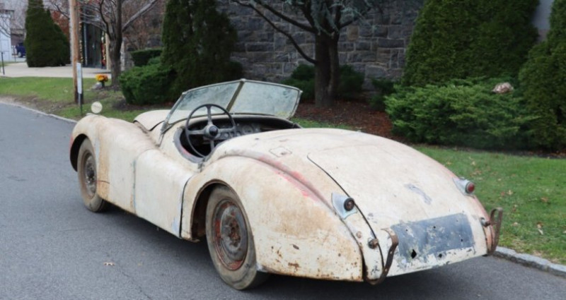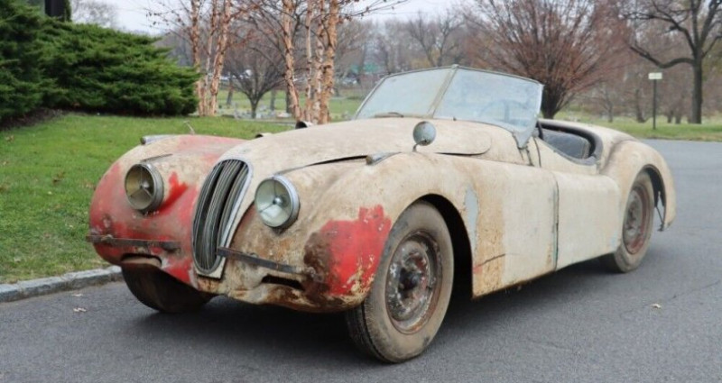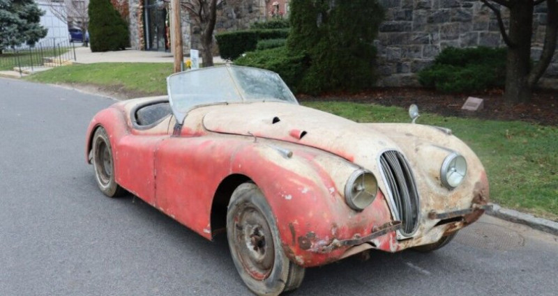 Ce 1952 Jaguar XK120 Roadster est une remarquable voiture originale à numéros cohérents, qui attend depuis longtemps une restauration complète. Sa livrée est rouge et sa cabine est noire. Elle vient de plusieurs années d'un propriétaire privé et est actuellement non opérationnelle. Cet XK120 Roadster est incontournable pour tout passionné de Jaguar, et serait un excellent ajout à la collection d'un collectionneur recherchant la voiture sportive britannique emblématique. Cette voiture originale est un trouvaille de dépôt, désirable et collectible. Elle offre un excellent exemple original pour une restauration.. Ce descriptif est basé sur les éléments communiqués par le propriétaire avec un traitement assisté. Merci pour votre indulgence en cas de formulation perfectible. Provenance : New York. Disponibilité : 7 semaines, clés en main. 37 500 € tout compris (importation, taxes, procédure d'immatriculation). Annonce publiée le 15/10/2025