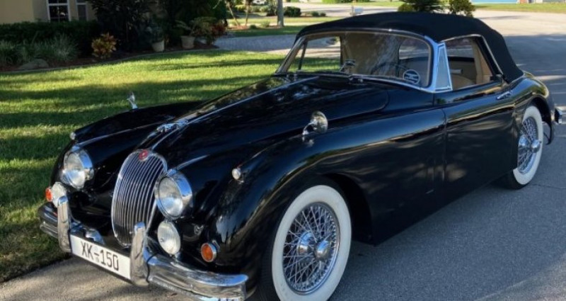Cet automobile date de 1958 et s'agit d'une Jaguar XK150 SE 3.4 Drop Head Coupe, châssis S827050, avec moteur V3530-8 et boîte de vitesses JL39970. Le véhicule a bénéficié d'une rénovation complète de la carrosserie auparavant, achevée en noir avec cuir marron et toit en tissu noir et canot. Le Jaguar Heritage Trust a fourni son soutien pour le respect des numéros originaux et le maintien de l'identification originale. Cette automobile, initialement de Grande-Bretagne, a été convertie en direction gauche. Elle dispose de nouveaux vitres, chaînes chromées, deux échappements, éclairages à feux brouillards Lucas, et pneus à bordures blanches. Le travail de peinture est bien réalisé, avec des jointures de carrosserie consistantes et uniformes. Le détail des châssis, soubassement et compartiment moteur est exceptionnel. Des photos et des factures de la rénovation sont incluses. Le véhicule a été récemment entretienné et roule bien. Les documents concernant la rénovation et le détail des travaux sont inclus.. Provenance : FL, USA. Disponibilité : 7 semaines, clés en main. 81 500 € tout compris (import, taxes, procédure d'immatriculation). Annonce publiée le 03/11/2025