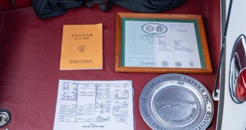 - Marque : Jaguar - Modèle : XK150s - Couleur extérieure : Crème - Couleur intérieure : Rouge - Transmission : Manuelle - Moteur : 3.4L inline-six - Carburateurs : Triples - Traction : RWD - Kilométrage : 2 206 miles - État : Restauration documentée (2022-2025) avec plus de 30 000$ en travaux mécaniques et esthétiques. Provenance : Missouri. Disponibilité : environ 7 semaines, clés en main. 109 000 € tout compris (importation, taxes, procédure d'immatriculation). Annonce publiée le 10/12/2025