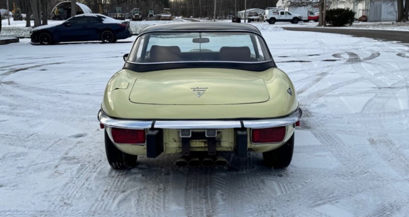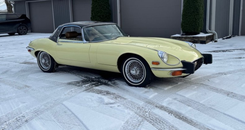 - Année : 1974 - Modèle : Jaguar E-type Roadster - Propriétaire initial : Collection privée - État : Ohio (États-Unis) - Anciennement en Texas et Californie - Kilométrage : 79 470 - Peinture : Bonne condition, réparée à un moment donné - Toit rigide noir : Original, avec quelques éraflures dans le fini - Intérieur : Original, avec faible usure, tapis en bon état - Moteur : Démarre facilement, puissant - Travaux en cours : Remplacement de la pompe de frein maitre et de la boîte de frein - Titre : Titre d'immatriculation clair et transférable en Ohio. Provenance : Ohio. Disponibilité : environ 7 semaines, clés en main. 61 500 € tout compris (importation, taxes, procédure d'immatriculation). Annonce publiée le 29/12/2025