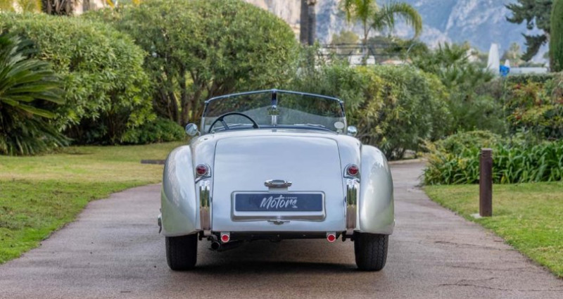 Motors Corner a le plaisir de vous présenter à la vente cette Jaguar XK120 de 1952. Cette XK120 roadster a été livrée neuve à Max Hoffman, l'importateur Jaguar pour la côte Est à New York, aux États-Unis. Le certificat du Jaguar Heritage Trust qui l'accompagne montre que la voiture a été fabriquée le 27 février 1952 et a quitté l'usine de Browns Lane dans une peinture “gris Birch” avec un intérieur bleu et une capote bleue. Le retour aux Royaume-Uni date de 1998, Le propriétaire actuel possède cette Jaguar depuis avril 2016. On trouve au dossier un passeport FIVA. État intérieur : L'intérieur est en très bel état général. L'habitacle est typique des roadsters anglais de l'époque. Les sièges en cuir offrent un bon maintien. Les compteurs Smiths d'origine sont complets et fonctionnels. L'ensemble de l’habitacle est en très bon état général. État extérieur : La carrosserie présente les lignes fluides et élégantes dessinées par William Lyons. Le pare-brise en deux parties, les ailes larges et les phares intégrés créent une silhouette incontournable. Les chromes (grille avant, pare-chocs, enjoliveurs) sont en très bon état. La peinture est uniforme. Cette XK120 est fidèle à l'esprit des roadsters anglais d'après-guerre. État mécanique : Sous le capot se trouve le moteur XK 3,4 litres à six cylindres. Ce moteur, moderne pour l'époque, développant à l’origine 160 chevaux, offre toujours de bonnes performances pour une voiture de 1952. La boîte manuelle à 4 rapports permet des passages de vitesses nets. Le système de freinage à tambours est caractéristique de l'époque. La suspension avant et l'essieu arrière assurent un comportement routier fidèle à l’origine. Le moteur démarre facilement et tourne régulièrement. Cette XK120 est en très bon état de marche et est prête à rouler. Historique et documentation : Certificat Jaguar Heritage Trust confirmant une fabrication le 27 février 1952 Livraison d'origine à Max Hoffman, New York Passeport FIVA (Fédération Internationale des Véhicules Anciens), (Danemark, 2007) Participation aux Mille Miglia Storica 2009 (n°144) Article de magazine et photos de la course disponibles Facture d'achat 2016 au dossier Papiers d'immatriculation UK depuis 1996 Immatriculée en Europe Éligible Mille Miglia Storica, cet exemplaire a participé en 2009 avec Gregers Bach (numéro 144). Caractéristiques techniques : Modèle : Jaguar XK120 Roadster (OTS) Année : 1953 Moteur : 6 cylindres en ligne 3,4L Puissance : 160 ch Couple : 264 Nm Transmission : Manuelle 4 rapports Carburant : Essence Carburateurs : Double SU Suspension avant : Bras triangulés, barres de torsion Suspension arrière : Essieu rigide, ressorts Freins : Tambours sur les 4 roues Roues : Acier 16 pouces Couleur d'origine : Gris Birch Intérieur d'origine : Cuir bleu, capote bleue Équipements : Plaque de record Jabbeke : Une plaque en laiton est fixée dans l'habitacle. Elle rappelle le record du monde de vitesse de 1949, où une XK120 a atteint 141,51 mph (environ 227 km/h) sur l'autoroute de Jabbeke en Belgique, certifiant que ce modèle partage la base d’une voiture de record ! Pare-brise en deux parties d'origine Capote souple Vitres latérales amovibles Compteurs Smiths complets Volant quatre branches Siège passager avec poignée Phares intégrés Chromes (grille, pare-chocs, enjoliveurs) Services fournis par Motors Corner Financement possible avec notre partenaire Livraison possible dans le monde entier sur devis Solutions d'assurance et de stockage disponibles Dossier photo détaillé et documentation complète sur demande MOTORS CORNER 39 bis Boulevard Stalingrad Impasse Miramar 06300 NICE Horaires d'ouverture : Lundi - Vendredi : 9h - 19h Samedi : 10h - 18h (sauf jours d'événements automobiles) Motors Corner est un complexe dédié à l'automobile de collection, aux véhicules de prestige et atypiques. Situé au Port de Nice, nous vous proposons une palette complète de services pour votre véhicule de collection IMPRIMER