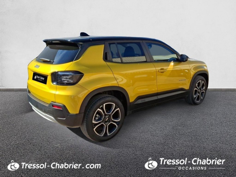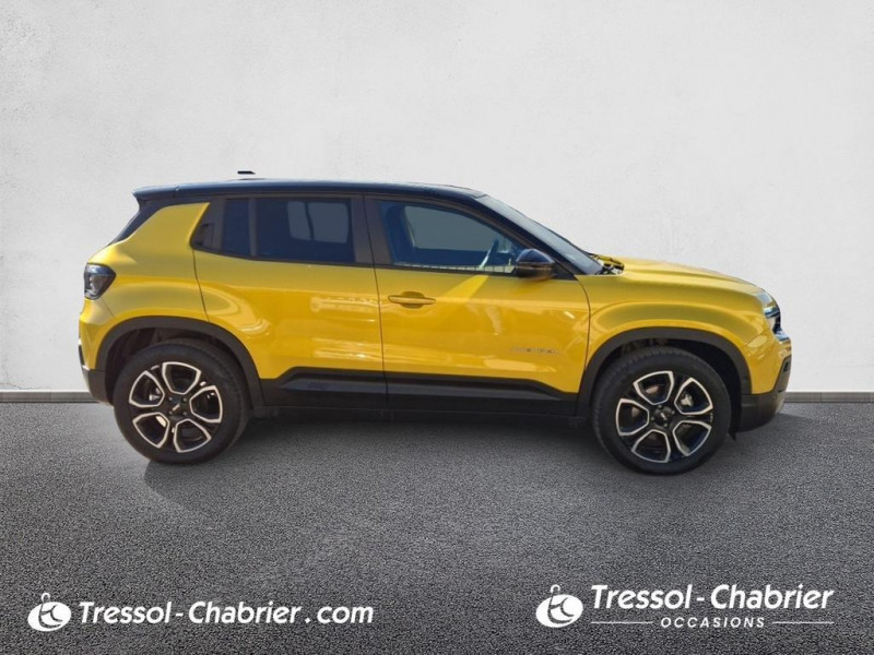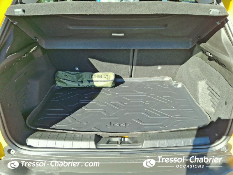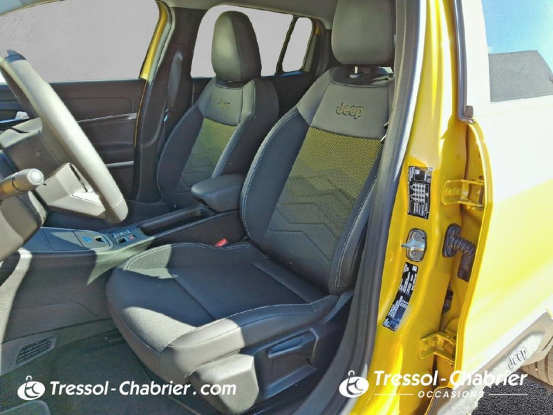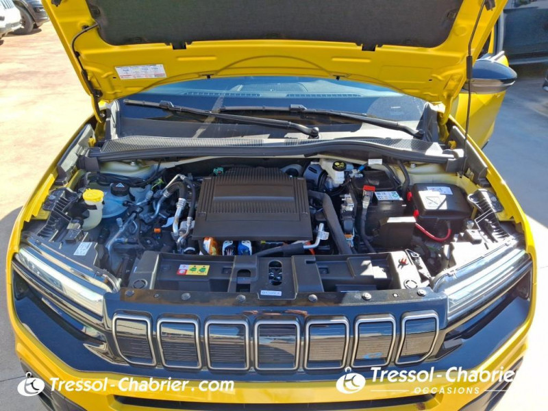 Aide à la descente (Hill Descent Control) / Assistance à la conduite semi-autonome / Boîte automate à fonction continue / Calandre Gloss Black / Chargeur embarqué 11 kW triphasé avec prédisposition fonction V2L (Vehicle To Load) / Chargeur sans fil pour smartphone / Combiné d'instrumentation numérique 10 / 25'' / Commutation automatique feux de route/feux de croisement / Contrôle de la traction (TCS) / Câble de recharge mode 3 / Détecteur de somnolence / ESP - Système de régulation de comportement dynamique / Eclairage d'ambiance multi-colore à LED / Eclairage extérieur d'accueil et d'accompagnement / Frein de stationnement électrique / Freinage autonome d'urgence avec détection piétons et cyclistes / Insert de planche de bord peint Gris Silver / Jantes alliage 18p - 215/55 R18 99 V / Plancher de coffre modulable et réversible / Poches aumônières au dos des sièges AV / Poignées de porte couleur carrosserie / Prise USB-C au 2e rang / Projecteurs Jeep Performance LED / Projecteurs antibrouillard à LED avec fonction cornering / Rétroviseur intérieur électrochrome sans contour / Rétroviseurs extérieurs Gloss Black / dégivrants / Révision touts 2 ans ou 25 000 km / Selec-Terrain : 6 modes de conduite / Sellerie mixte tissu / TEP / Services connectés Uconnect Services / Siège conducteur à réglages manuels 6 voies / Siège passager à réglages manuels 4 voies / Spots de lecture AV et AR à LED / Système audio 6 HP 100 W / Système multimédia à écran tactile Uconnect 10 / Android Auto sans fils / Tapis de sol AV et AR / Vitres AV et AR électriques et séquentielles / Vitres et lunette AR surteintées / Volant en TEP