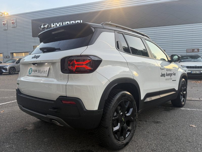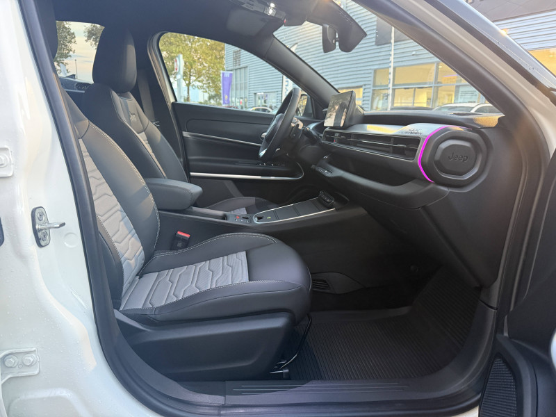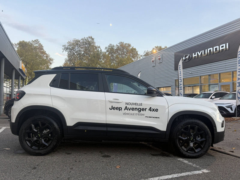 Aide à la descente (Hill Descent Control) / Airbags frontaux et latéraux conducteur et passager, airbags rideaux AV/AR / Assistance à la conduite semi-autonome / Badges extérieurs Jeep et Avenger noirs / Barres de toit longitudinales noires / Boîte de vitesses robotisée à double embrayage 6 rapports / Chargeur sans fil pour smartphone / Combiné d'instrumentation numérique 10,25'' / Commutation automatique feux de route/feux de croisement / Contrôle de la traction (TCS) / Couvercle magnétique pour le rangement de la console centrale / Crochet de remorquage AR / Eclairage d'ambiance multi-colore à LED / Eclairage extérieur d'accueil et d'accompagnement / ESP - Système de régulation de comportement dynamique / Freinage autonome d'urgence avec détection piétons et cyclistes / Frein de stationnement électrique / Insert de planche de bord peint Gris Silver / Jantes alliage 17" noir mat avec pneus M+S / 3PMSF - Logo Jeep coloris vert 215/60 R17 100 V / Kit de gonflage (Fix & Go) / Pare-chocs AV et AR spécifiques / Plancher de coffre modulable et réversible / Plaque de protection sous châssis (AV) / Poches aumônières au dos des sièges AV / Poignées de porte couleur carrosserie / Prédisposition attelage / Prise USB-C au 2e rang / Projecteurs antibrouillard à LED avec fonction cornering / Projecteurs Jeep Performance LED / Rétroviseur intérieur électrochrome sans contour / Révision tout 1 an ou 25 000 km / Selec-Terrain à 4 modes de conduite Auto, Sable/Bouge, Neige, Sport / Sellerie mixte tissu/TEP noir/gris lavable / Services connectés Uconnect Services (12 mois gratuit) / Siège conducteur à réglages manuels 6 voies / Siège passager à réglages manuels 4 voies / Spots de lecture AV et AR à LED / Système multimédia àécran tactile Uconnect 10,25'' avec Apple Carplay, Android Auto sans fils / Tapis de sol AV et AR / Transmission intégrale 4xe / Vitres AV et AR électriques et séquentielles / Volant en TEP