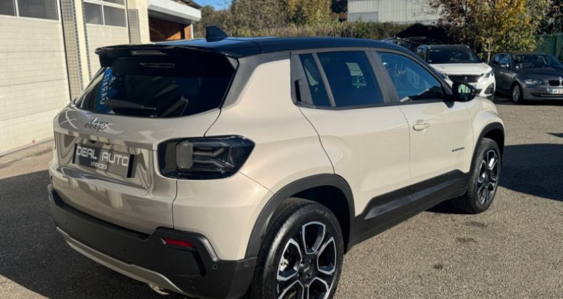 Jeep Avenger Electrique 115kW 156ch Summit, (S.U.V.), Stone Métallisé + toit Volcano, 4cv, 5 portes, mise en circulation le 27-02-2024, première main, garantie 12 mois. 5 places, longueur : 4,08 mètres, poids en charge 2025 Kg, boîte de vitesse : automatique OPTIONS ET EQUIPEMENTS : Audio - Télécommunications - 6 Haut parleurs - Appel d'Assistance Localisé - Appel d'Urgence Localisé - Commandes du système audio au volant - Ecran tactile - Fonction MP3 - Interface Media - Kit mains-libres Bluetooth - Pack Navigation - Prise USB - Radio numérique DAB - Services connectés Conduite - Aide au démarrage en côte - Allumage des phares automatique - Capteur de luminosité - Capteur de pluie - Démarrage sans clé - Follow me home - Frein stationnement électrique - Limiteur de vitesse - Mode de conduite - Régulateur de vitesse - Régulateur de vitesse adaptatif - Régulateur de vitesse et de distance - Système d'accès sans clé - Système d'assistance à la descente Extérieur - Caméra de recul - Caméra vue panoramique 360° - Coffre assisté électriquement - Eclairage au sol - Eclairage statique d'intersection - Feux arrière à LED - Feux de freinage d'urgence - Feux de jour à LED - Feux de route automatiques - Jantes Alu - Ouverture du coffre mains-libres - Phares additionnels en virage - Phares avant LED - Phares de route adaptatifs - Poignées ton carrosserie - Radar de stationnement AR - Radar de stationnement AV - Rétroviseurs dégivrants - Rétroviseurs rabattables électriquement - Rétroviseurs électriques - Système d'éclairage intelligent Intérieur - Accoudoir central AV - Appui-tête conducteur réglable hauteur - Appui-tête passager réglable en hauteur - Bacs de portes avant - Banquette 60/40 - Banquette AR rabattable - Boite à gants fermée - Clim automatique - Eclairage d'ambiance - Ecran multifonction couleur - Filtre à Pollen - Fixation Isofix siège passager avant - Fixations Isofix aux places arrières - Lampes de lecture à l'arrière - Lampes de lecture à l'avant - Lunette AR dégivrante - Lunette arrière surteintée - Ouverture des vitres séquentielle - Plafonnier central AV et AR à LED - Plancher de coffre mobile - Poches d'aumonières - Prise 12V - Rétroviseur intérieur électrochrome - Siège conducteur avec réglage lombaire - Siège conducteur chauffant - Siège conducteur réglable en hauteur - Siège passager avec réglage lombaire - Siège passager chauffant - Siège passager réglable en hauteur - Verrouillage auto. des portes en roulant - Verrouillage centralisé à distance - Vitres arrière surteintées - Vitres arrière électriques - Vitres avant électriques - Volant réglable en profondeur et hauteur Sécurité - ABS - AFIL - Aide au freinage d'urgence - Airbag conducteur - Airbag passager - Airbags latéraux avant - Airbags rideaux - Airbags rideaux AR - Antipatinage - Ceintures avant ajustables en hauteur - Dispositif freinage automatique - Détecteur de sous-gonflage - ESP - Freinage automatique d'urgence - Phares antibrouillard LED - Reconnaissance panneaux de signalisation - Répartiteur électronique de freinage - Système avancé de détection d'obstacles - Système de contrôle des angles morts - Système de détection de somnolence - Système de prévention des collisions - Témoin de bouclage des ceintures AV Autres équipements et informations : - Stone Métallisé + toit Volcano - Kit de gonflage (Fix & Go) - Tissu/TEP Noir détails gris Ideal Auto Varces 34 rue du Peuil 38760 Varces