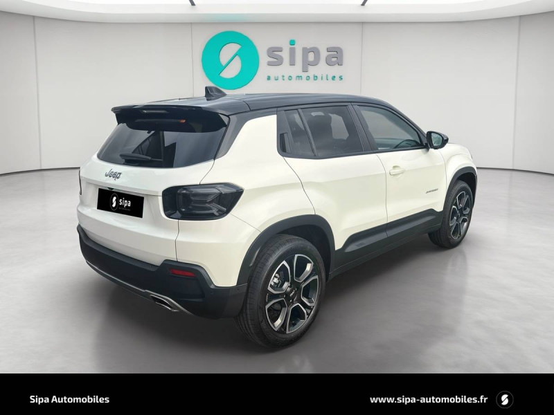 Aide à la descente (Hill Descent Control) / Airbags frontaux et latéraux conducteur et passager, airbags rideaux AV/AR / Assistance à la conduite semi-autonome / Boîte de vitesses robotisée à double embrayage 6 rapports / Calandre Gloss Black / Chargeur sans fil pour smartphone / Combiné d'instrumentation numérique 10,25'' / Commutation automatique feux de route/feux de croisement / Contrôle de la traction (TCS) / Eclairage d'ambiance multicolore à LED / Eclairage extérieur d'accueil et d'accompagnement / ESP - Système de régulation de comportement dynamique / Freinage autonome d'urgence avec détection piétons et cyclistes / Frein de stationnement électrique / Insert de planche de bord peint Gris Silver / Jantes alliage 18" - 215/55 R18 99 V / Plancher de coffre modulable et réversible / Poches aumônières au dos des sièges AV / Poignées de porte couleur carrosserie / Prédisposition attelage / Prise USB-C au 2e rang / Projecteurs antibrouillard à LED avec fonction cornering / Projecteurs Jeep Performance LED / Rétroviseur intérieur électrochrome sans contour / Révision tout 1 an ou 25 000 km / Selec-Terrain : 6 modes de conduite Eco, Normal, Sport, Sable, Bouge, Neige / Sellerie mixte tissu / TEP / Services connectés Uconnect Services / Siège conducteur à réglages manuels 6 voies / Siège passager à réglages manuels 4 voies / Spots de lecture AV et AR à LED / Système multimédia àécran tactile Uconnect 10,25'' avec Apple Carplay, Android Auto sans fils / Tapis de sol AV et AR / Vitres AV et AR électriques et séquentielles / Volant en TEP