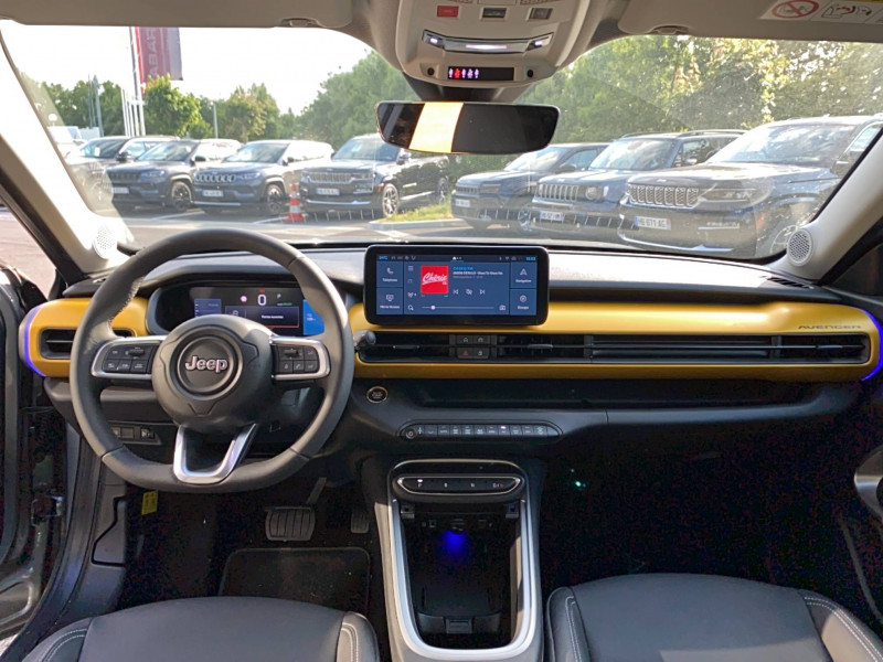 Aide à la descente (Hill Descent Control) / Airbags frontaux et latéraux conducteur et passager, airbags rideaux AV/AR / Assistance à la conduite semi-autonome / Câble de recharge mode 3 / Calandre Gloss Black / Chargeur embarqué 11 kW triphasé / Chargeur sans fil pour smartphone / Combiné d'instrumentation numérique 10,25'' / Commutation automatique feux de route/feux de croisement / Eclairage d'ambiance multi-colore à LED / Eclairage extérieur d'accueil et d'accompagnement / Enter-N-Go : ouverture et démarrage sans clé / Fixation Isofix sur le siège passager AV et les sièges latéraux AR / Freinage autonome d'urgence avec détection piétons et cyclistes / Frein de stationnement électrique / Insert de planche de bord peint Gris Silver / Jantes alliage 18" - 215/55 R18 99 V / Pack Assistance à la conduite / Pack Rangement / Pack Style Full LED / Plancher de coffre modulable et réversible / Poches aumônières au dos des sièges AV / Poignées de porte couleur carrosserie / Prise USB-C au 2e rang / Projecteurs antibrouillard à LED avec fonction cornering / Projecteurs Jeep Performance LED / Rétroviseur intérieur électrochrome sans contour / Selec-Terrain : 6 modes de conduite / Sellerie mixte tissu / TEP / Services connectés Uconnect Services / Siège conducteur à réglages manuels 6 voies / Siège passager réglable 4 points / Spots de lecture AV et AR à LED / Système multimédia àécran tactile Uconnect 10,25'' avec Apple Carplay, Android Auto sans fils / Tapis de sol AV et AR / Vitres AV et AR électriques et séquentielles / Volant et pommeau de levier de vitesses en TEP