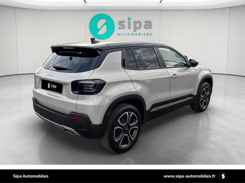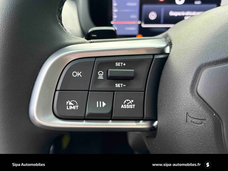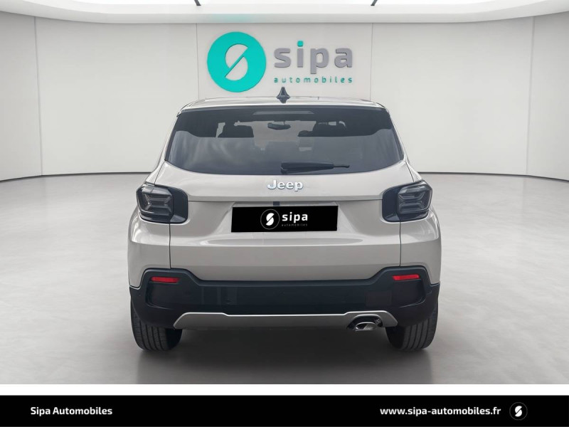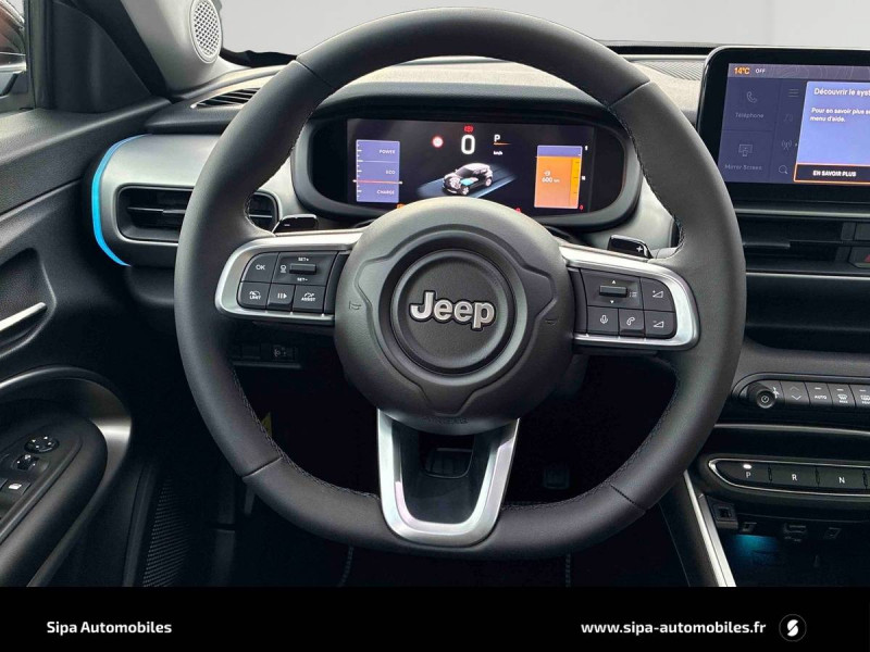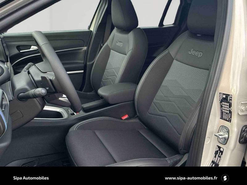 Aide à la descente (Hill Descent Control) / Airbags frontaux et latéraux conducteur et passager, airbags rideaux AV/AR / Assistance à la conduite semi-autonome / Boîte de vitesses robotisée à double embrayage 6 rapports / Calandre Gloss Black / Chargeur sans fil pour smartphone / Combiné d'instrumentation numérique 10,25'' / Commutation automatique feux de route/feux de croisement / Contrôle de la traction (TCS) / Eclairage d'ambiance multicolore à LED / Eclairage extérieur d'accueil et d'accompagnement / ESP - Système de régulation de comportement dynamique / Freinage autonome d'urgence avec détection piétons et cyclistes / Frein de stationnement électrique / Insert de planche de bord peint Gris Silver / Jantes alliage 18" - 215/55 R18 99 V / Plancher de coffre modulable et réversible / Poches aumônières au dos des sièges AV / Poignées de porte couleur carrosserie / Prédisposition attelage / Prise USB-C au 2e rang / Projecteurs antibrouillard à LED avec fonction cornering / Projecteurs Jeep Performance LED / Rétroviseur intérieur électrochrome sans contour / Révision tout 1 an ou 25 000 km / Selec-Terrain : 6 modes de conduite Eco, Normal, Sport, Sable, Bouge, Neige / Sellerie mixte tissu / TEP / Services connectés Uconnect Services / Siège conducteur à réglages manuels 6 voies / Siège passager à réglages manuels 4 voies / Spots de lecture AV et AR à LED / Système multimédia àécran tactile Uconnect 10,25'' avec Apple Carplay, Android Auto sans fils / Tapis de sol AV et AR / Vitres AV et AR électriques et séquentielles / Volant en TEP