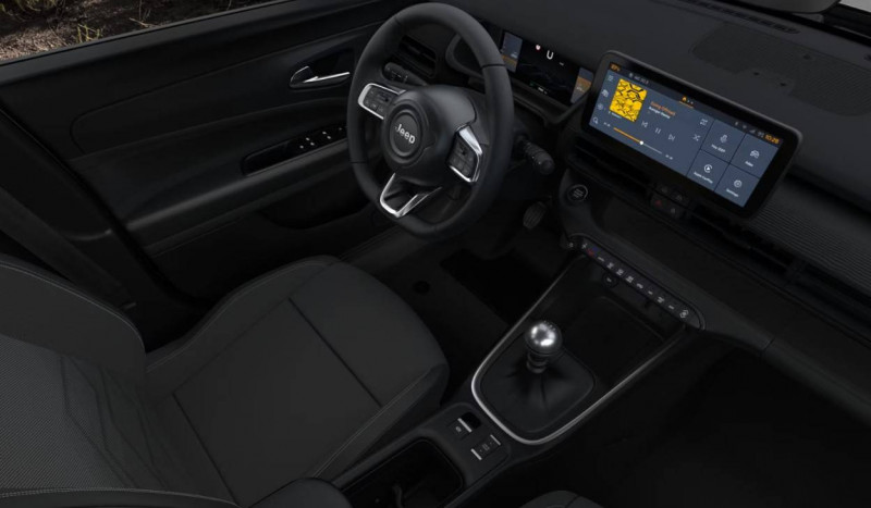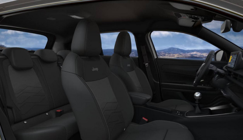 av/ar / Boîte de vitesses manuelle 6 rapports / Combiné dinstrumentation numérique 10,25 / Commutation automatique feux de route/feux de croisement / Contrôle de la traction (tcs) / Esp - système de régulation de comportement dynamique / Frein de stationnement électrique / Freinage autonome durgence avec détection piétons et cyclistes / Insert de planche de bord noir grainé / Phares led avec feux ar halogènes / Plancher de coffre modulable et réversible / Poches aumônières au dos des sièges av / Poignées de porte couleur carrosserie / Pommeau de levier de vitesses en tep / Prédisposition attelage / Prise usb-c au 2e rang / Rétroviseur intérieur électrochrome sans contour / Selec-terrain : 6 modes de conduite / Sellerie mixte tissu / tep / Services connectés uconnect services / Siège conducteur à réglages manuels 6 voies / Siège passager à réglages manuels 4 voies / Vitres av et ar électriques et séquentielles / Volant en tep