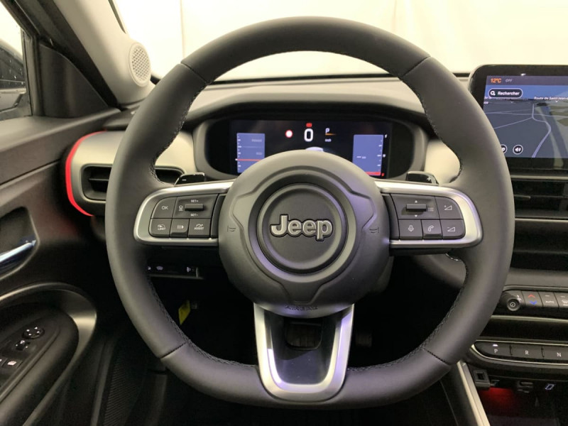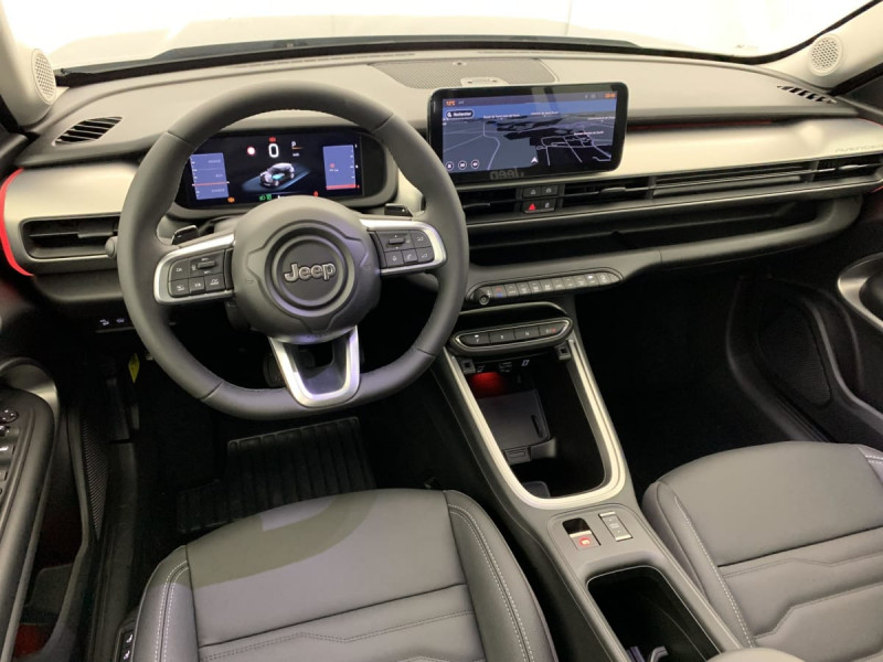 ESP - Système de régulation de comportement dynamique / Eclairage d'ambiance multi-colore à LED / Tapis de sol AV et AR / Chargeur sans fil pour smartphone / Combiné d'instrumentation numérique 10,25'' / Système multimédia àécran tactile Uconnect 10,25'' avec Apple Carplay, Android Auto sans fils / Aide à la descente (Hill Descent Control) / Assistance à la conduite semi-autonome / Commutation automatique feux de route/feux de croisement / Eclairage extérieur d'accueil et d'accompagnement / Plancher de coffre modulable et réversible / Poches aumônières au dos des sièges AV / Spots de lecture AV et AR à LED / Vitres AV et AR électriques et séquentielles / Projecteurs Jeep Performance LED / Airbags frontaux et latéraux conducteur et passager, airbags rideaux AV/AR / Projecteurs antibrouillard à LED avec fonction cornering / Rétroviseur intérieur électrochrome sans contour / Freinage autonome d'urgence avec détection piétons et cyclistes / Jantes alliage 18" - 215/55 R18 99 V / Prise USB-C au 2e rang / Poignées de porte couleur carrosserie / Frein de stationnement électrique / Insert de planche de bord peint Gris Silver / Prédisposition attelage / Selec-Terrain : 6 modes de conduite Eco, Normal, Sport, Sable, Bouge, Neige / Volant en TEP / Contrôle de la traction (TCS) / Boîte de vitesses robotisée à double embrayage 6 rapports /