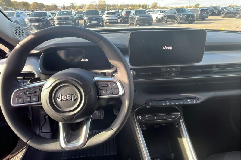 ESP - Système de régulation de comportement dynamique / Eclairage d'ambiance multi-colore à LED / Chargeur sans fil pour smartphone / Combiné d'instrumentation numérique 10,25'' / Système multimédia àécran tactile Uconnect 10,25'' avec Apple Carplay, Android Auto sans fils / Aide à la descente (Hill Descent Control) / Assistance à la conduite semi-autonome / Commutation automatique feux de route/feux de croisement / Eclairage extérieur d'accueil et d'accompagnement / Plancher de coffre modulable et réversible / Poches aumônières au dos des sièges AV / Siège passager à réglages manuels 4 voies / Spots de lecture AV et AR à LED / Vitres AV et AR électriques et séquentielles / Projecteurs Jeep Performance LED / Airbags frontaux et latéraux conducteur et passager, airbags rideaux AV/AR / Projecteurs antibrouillard à LED avec fonction cornering / Rétroviseur intérieur électrochrome sans contour / Freinage autonome d'urgence avec détection piétons et cyclistes / Jantes alliage 18" - 215/55 R18 99 V / Prise USB-C au 2e rang / Poignées de porte couleur carrosserie / Frein de stationnement électrique / Prédisposition attelage / Selec-Terrain : 6 modes de conduite Eco, Normal, Sport, Sable, Bouge, Neige / Volant en TEP / Contrôle de la traction (TCS) / Boîte de vitesses robotisée à double embrayage 6 rapports /