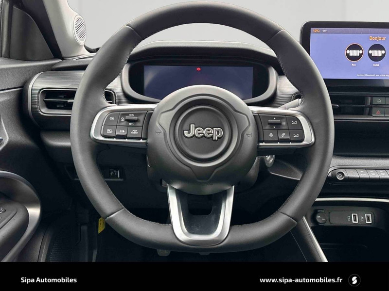 Aide à la descente (Hill Descent Control) / Airbags frontaux et latéraux conducteur et passager, airbags rideaux AV/AR / Combiné d'instrumentation numérique 10,25'' / Fixation Isofix sur le siège passager AV et les sièges latéraux AR / Freinage autonome d'urgence avec détection piétons et cyclistes / Frein de stationnement électrique / Insert de planche de bord noir grainé / Jantes alliage 17" Silver Gloss - 215/60 R17 96 H / Phares LED avec feux AR halogènes / Plancher de coffre modulable et réversible / Poches aumônières au dos des sièges AV / Poignées de porte couleur carrosserie / Prédisposition attelage / Prise USB-C au 2e rang / Selec-Terrain : 6 modes de conduite / Sellerie mixte tissu / TEP / Services connectés Uconnect Services / Siège conducteur à réglages manuels 6 voies / Siège passager réglable 4 points / Système multimédia àécran tactile Uconnect 10,25'' avec Apple Carplay, Android Auto sans fils / Vitres AV et AR électriques et séquentielles / Volant et pommeau de levier de vitesses en TEP