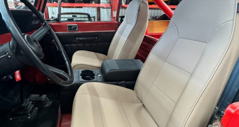 Le véhicule en question est doté d'un moteur original de 4, 2 litres V6, associé à une boîte de vitesses manuelle à quatre rapports. Le second propriétaire l'a possédé depuis 1989. Le véhicule a été mis à niveau avec de nouvelles sièges, console centrale, bikini top, jantes, liners de bois de coté, système audio pour véhicules de collection équipé de Bluetooth, haut-parleurs audio, nouveau carburant, tuyaux de direction et de radiateur, pompe à essence, capote de moteur, nouveaux contacts d'électrode, câbles d'allumage et freins arrière révisés. Le radiateur a également été rénové. Le véhicule a reçu un changement d'huile et d'huile de filtre, un barre de roulement de suspension gauche neuf, ainsi qu'un pare-chocs rouge et blanc. Tous les feux fonctionnent correctement. Le véhicule est doté d'un certificat d'immatriculation propre. Il est accompagné d'un toit en tissu blanc et d'une roue de remplacement avec un support. Le véhicule peut être expédié partout dans le pays.. Ce descriptif est basé sur les éléments communiqués par le propriétaire avec un traitement assisté. Merci pour votre indulgence en cas de formulation perfectible. Provenance : South Dakota. Disponibilité : 7 semaines, clés en main. 32 000 € tout compris (importation, taxes, procédure d'immatriculation). Annonce publiée le 30/09/2025
