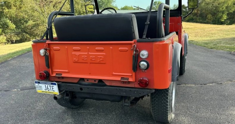 Cet automobile en question est un Jeep CJ5 datant de 1973, originaire de Floride. Le véhicule a été acquis à l'individu qui l'a découvert et l'a ramené en Pennsylvanie. On considère que le compteur de kilomètres original est conservé, ce qui est mentionné sur la titularisation de Pennsylvanie. Les sièges intérieurs ont été récemment remis en état. L'empattement original et la roue de direction sont inclus. Le capot, de couleur noir tendre, est presque neuf et n'a pas été installé pendant la période de possession. Une grande partie de la peinture originale est intacte, avec un certain patinage caractéristique et quelques repaintures de type spray. Ce Jeep fonctionne excellemment, possède une puissance abondante et roule bien pour ce qu'il est. Il est mis en vente car le garage est plein et il y a trop de Jeeps!. Provenance : PA, USA. Disponibilité : 7 semaines, clés en main. 22 500 € tout compris (import, taxes, procédure d'immatriculation). Annonce publiée le 10/11/2025