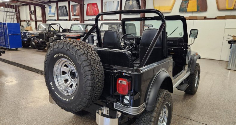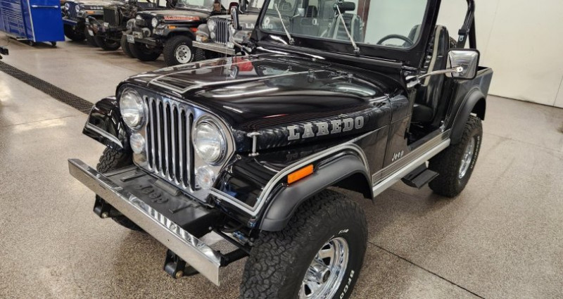 • 1986 Jeep CJ7 Laredo • Black • Original steel body • Shiny steel OEM floors • Working AC (original) • Original seats • Original Console • Original Dash • OEM manuals (not reproductions) • Clean Carfax • Less than actual mileage due to speedo mishap • 5 rare original 15x7 chrome wheels • 5 all but new 33x10.50r15 BFG ATs • Power Steering • Power Brakes • Tilt Steering Column • Trac Loc Rear Differential • OEM Side Steps • Leather steer wheel and grab bar • Working clock, tach, side steps and rocker trim • Original gauges, clock, horn • Original OEM AM/FM Auto reverse cassette radio • Automatic OR manual transmission • Factory Auto (rare) • Rare options • Premium small suspension lift • Black frame • Automatic inspections welcomed • International shipping available • Wires, cash and cashier's checks accepted • 614-293-1947 (contact number) • Sold on Rudy's site • IAP (Internet Auctioneers' Payment) not accepted • Veterans and First Responders appreciated. Provenance : Ohio. Disponibilité : environ 7 semaines, clés en main. 47 000 € tout compris (importation, taxes, procédure d'immatriculation). Annonce publiée le 26/11/2025
