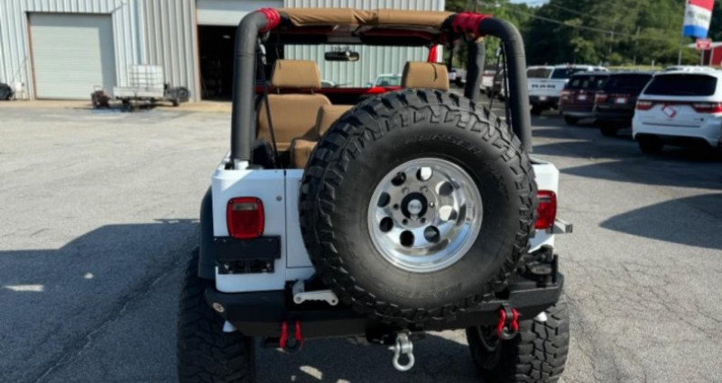 - Marque : Jeep - Modèle : CJ - Année : 1978 - Couleur extérieure : Blanc - Couleur intérieure : Marron - Mileage : 1 234 miles - Moteur : 5.3 LS - Boîte de vitesses : 4l60e - Transfer case : T4, poli - Suspension : Dual fox shocks, stabilisateur de direction fox - Roues : 35x12.50r15 Master Craft, Weld Racing 15in - Équipements : Winch Smitty Built, barres de clignotants, échappements, système audio Kicker, volant bois, panneaux de commande Marshall, cage de sécurité, poignées Master Craft, sans toit ni portes - Châssis : YJ, avant-train Grand Wagoneer Dana - État : Restauré, de qualité d'exposition - Titre : Titré comme CJ 78 mais sur un tub et avant-train YJ.. Provenance : Georgia. Disponibilité : environ 7 semaines, clés en main. 42 500 € tout compris (importation, taxes, procédure d'immatriculation). Annonce publiée le 05/12/2025
